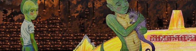 Here is the world where Stardusters and Lizardmen is set. It is the environmental nightmare known as the planet Galtorr Prime. It is the world where Sizzahl was born and where young George Jetson, the Telleron cadet from Xiar’s exploration command has to find a new place to colonize. I should explain that of the characters from this novel excerpt, George Jetson, Davalon, Brekka, Menolly, and Tanith are Telleron tadpoles, or children. Alden and Gracie Morrell are a middle-aged farm couple from Iowas that were turned back into children in a previous adventure. Let me share with you a Canto from this work in progress….