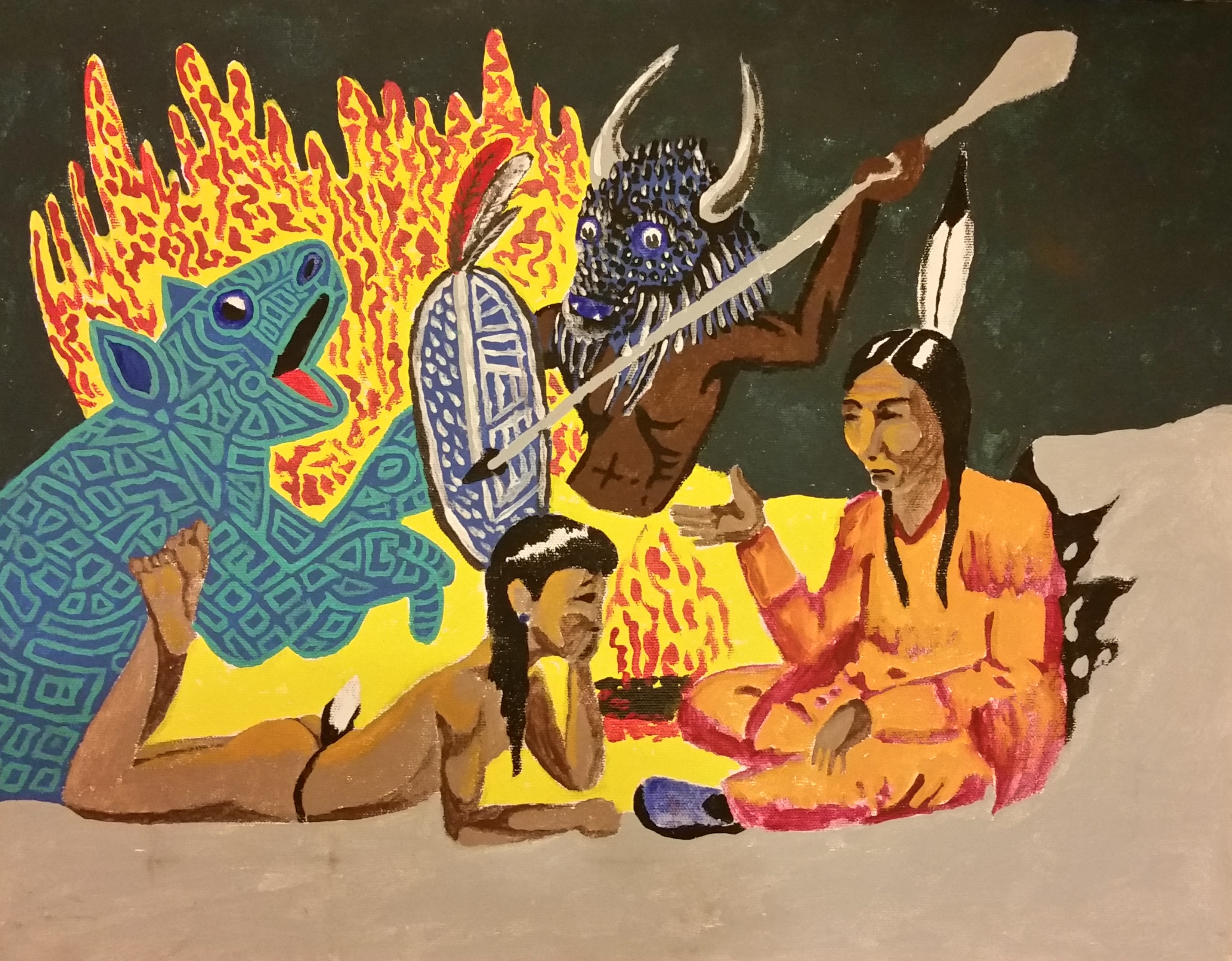 The painting above (Story-Teller of Skye Lodge) is making progress too, though you can see there is still a long way to go to complete it, especially once I layer in all the intricate designs in the dream-tale background.