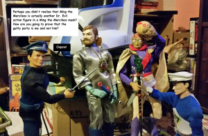 Max Steele, the most practical member of the Hero-Guy Action Team, put Dr. Evil/Ming the Merciless down on the Dr. Evil mint-in-box box and began to saw with his Captain…