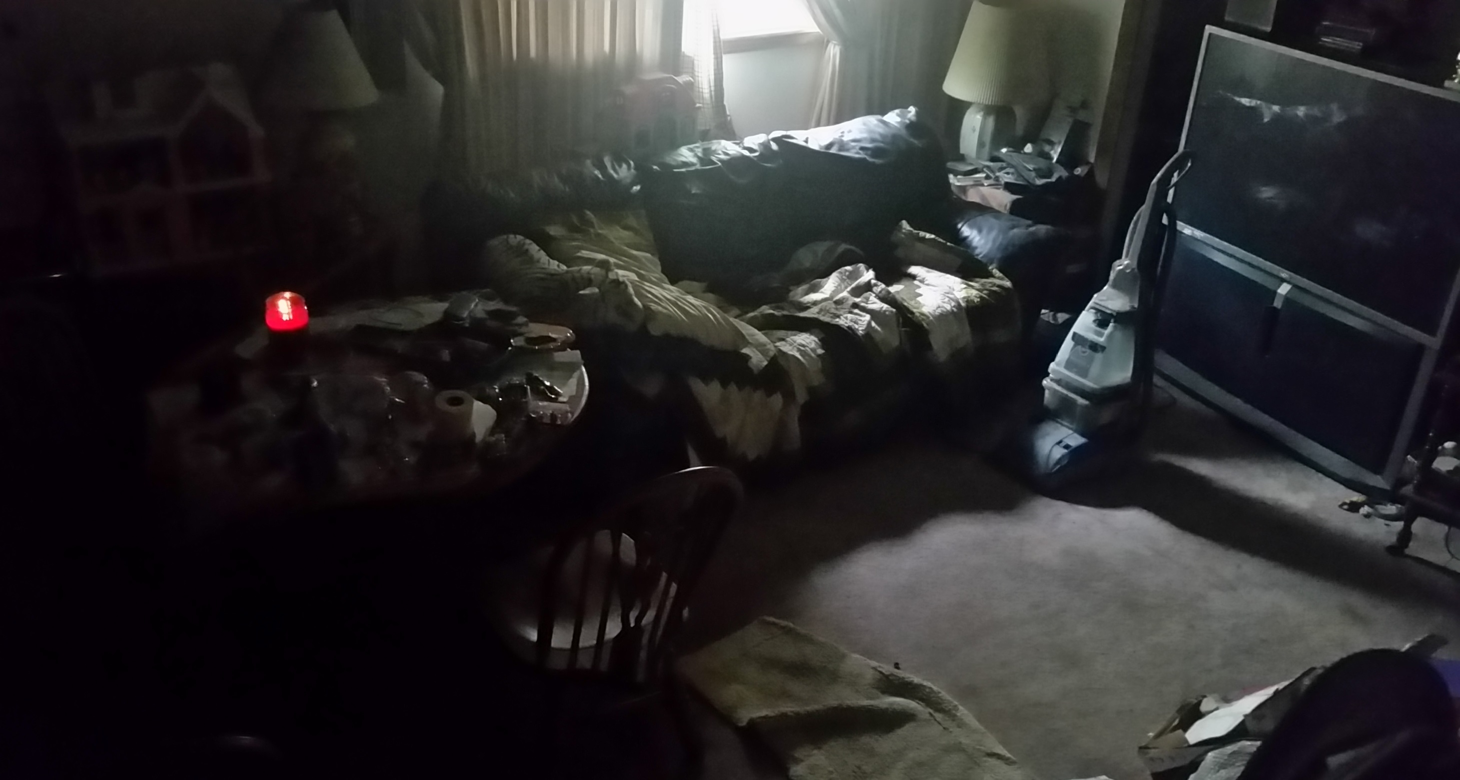 We not only prep, we practice. This is the third time this disaster has happened. We are getting the procedures down. Note the rug shampooer and the candle.