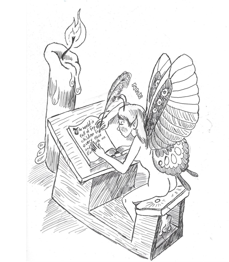 What I did was simply start an essay without any direction or plan in mind, going wherever the insanely creative part of my brain led me. So, I started with the picture of the fairy girl sleeping instead of doing her writing. That led me to the notion that she was supposed to be writing just as I was supposed to be writing, but she had an empty mind just as I had an empty mind at that moment. So, the light bulb suddenly went on over my head. And then I managed to turn it off again before gravity made it fall down on my head so that it would merely bonk my brain and not also set my old gray hair on fire. And then I wrote down the title that the jumble of associatively challenged details inspired in me, “Brain-Free Writing.”
