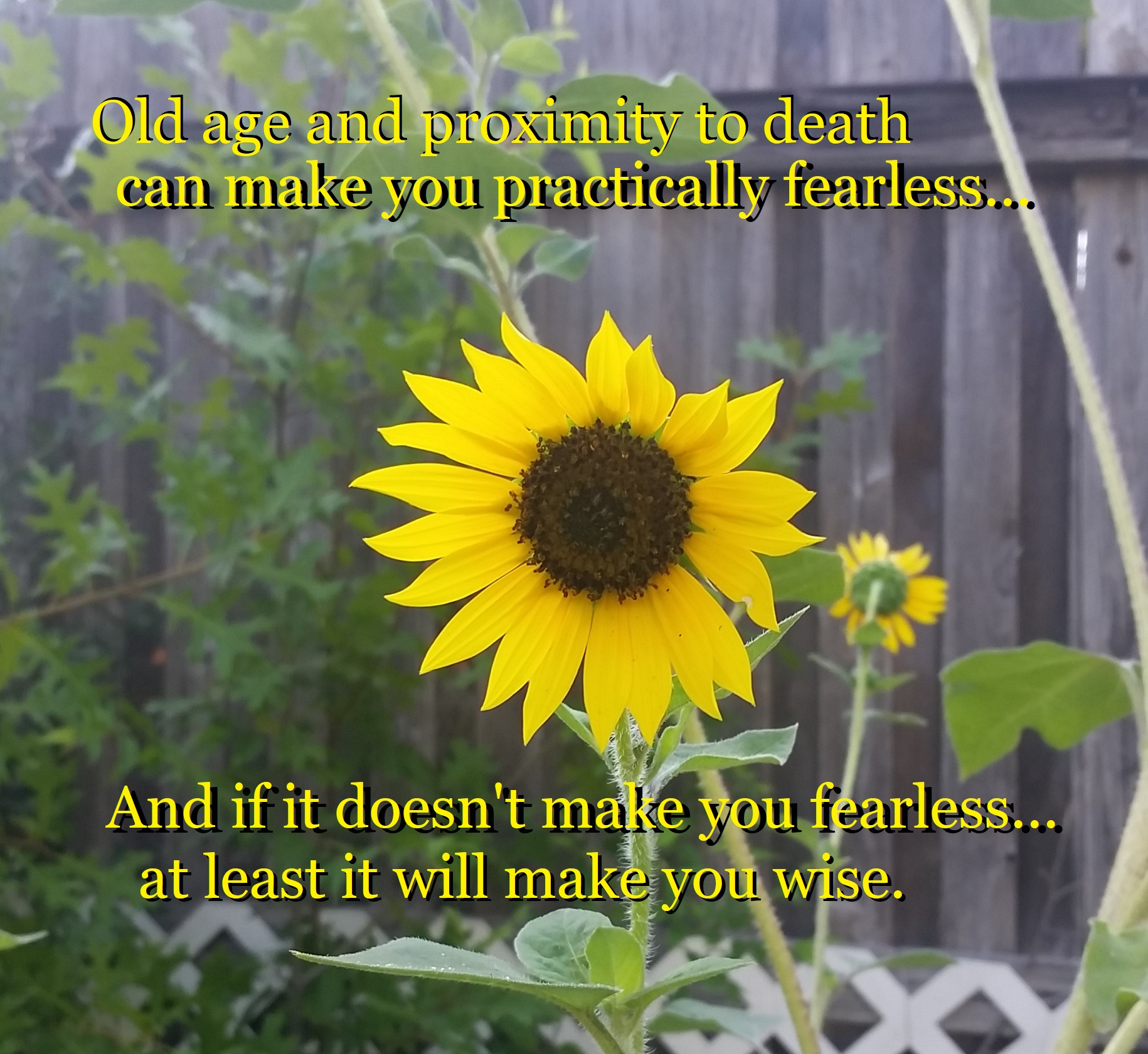 We are not easily defeated, my sunflower and I. And neither of us can stay down and unhappy for long without being ourselves deceased.