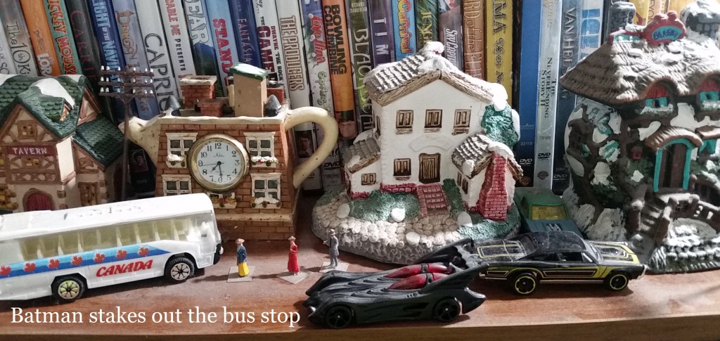 But Batman is at the bus stop to stop boogeymen from arriving by bus. And Christmas is almost upon us, the season of fruitcakes and football in bowl games. And visions of sugarplums dance through their heads… and potential for gingerbread cookies and chocolate milk. So, put it all in a blender and drink it all down. Life is like fragments of fruitcake, drawing flies, but slaying any fly who takes a bite. It is toxic, but pretty. Soothing but sour. And only the colors, details, and arrangements ever change.