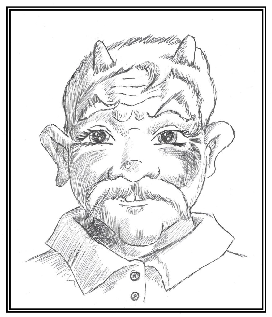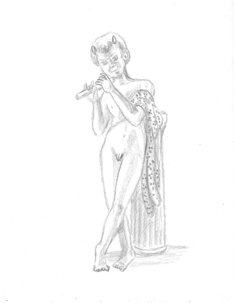 This is Devon Martinez’s self-portrait. He tends to draw people as mythological creatures like fauns, satyrs, and nymphs.