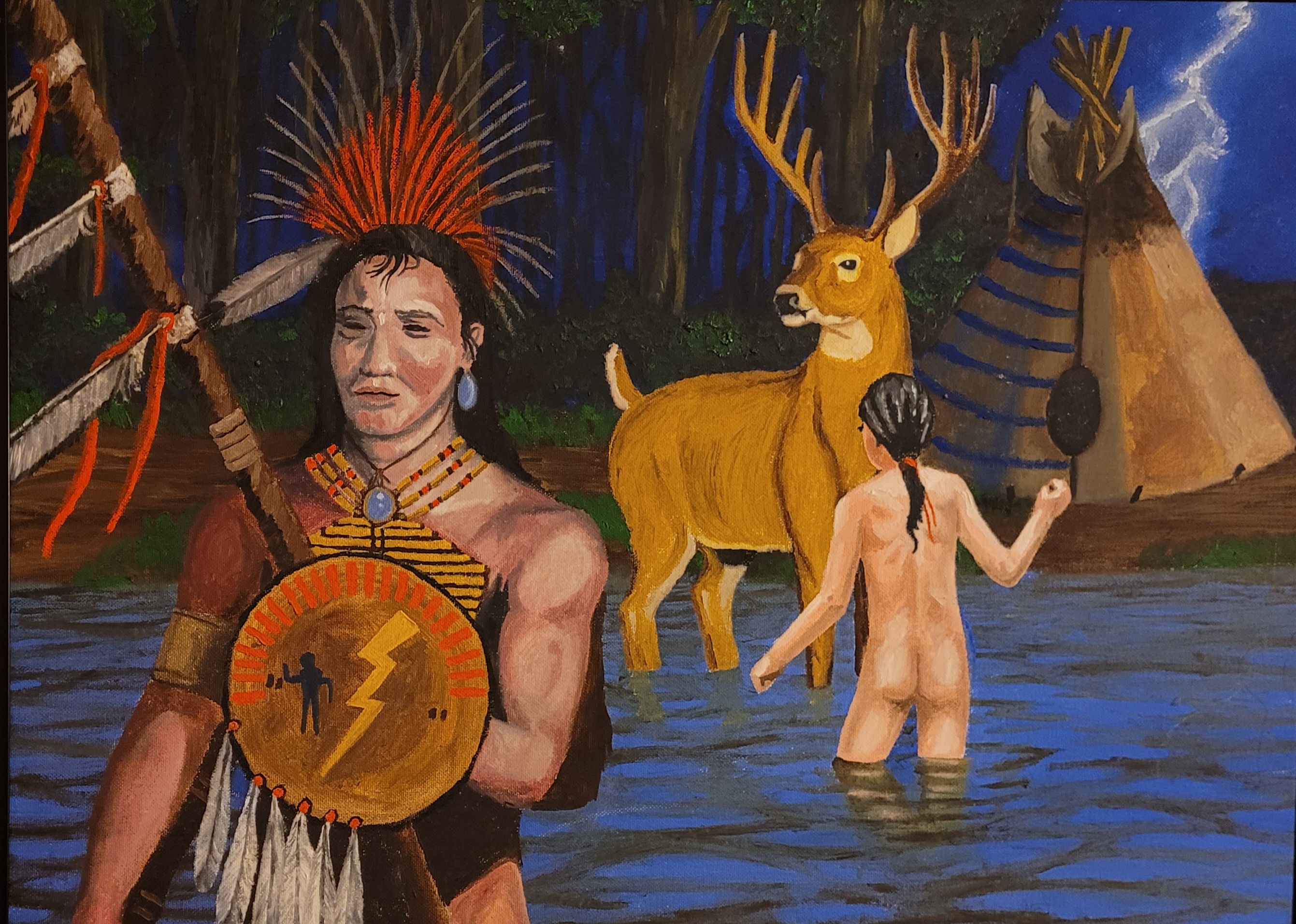 That phrase, “the Reds and the Blues,” is important to me because Red means “Happy” and Blue means “Sad.” Opposites that make a whole when taken together. This picture is of a boy that might have been my son if I had married the blond girlfriend that was closest to me (at times) in the 1980s. It is called, “Long Ago It Might Have Been.”