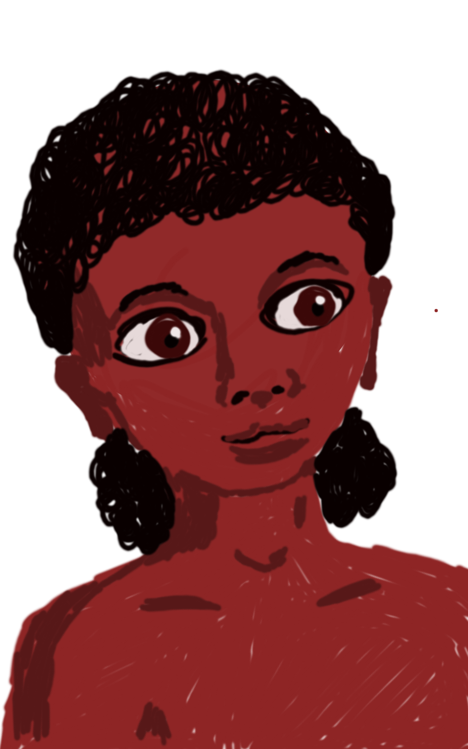 More and more it feels like my digital drawings are turning out cross-eyed girls. I look at this portrait of the Black Child of Quaran, and though I know she’s focusing straight ahead, the more it seems her eyes have gone medically wrong and crossed… a neural disorder.