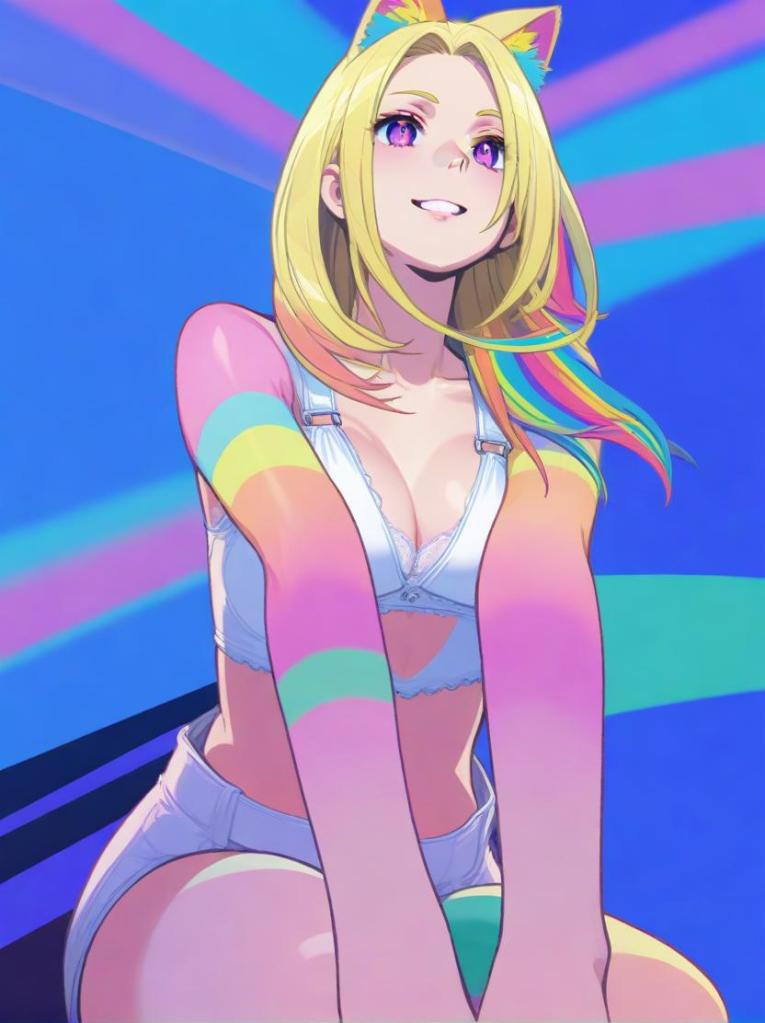 The cat girl with the rainbow colors.
