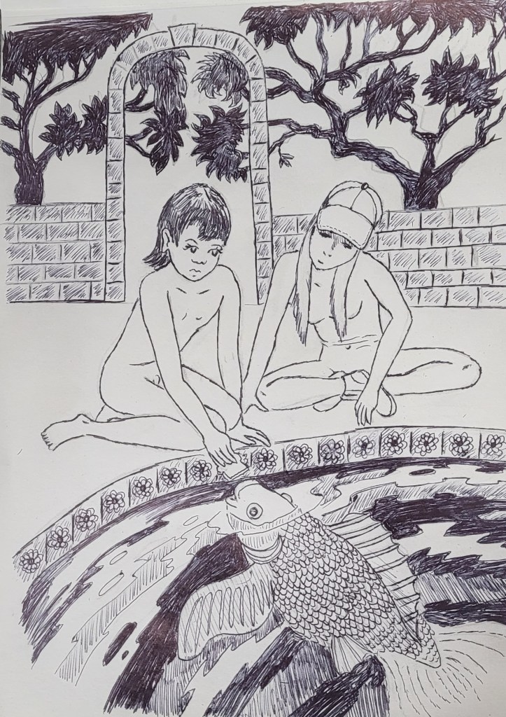 I can’t show this picture on Facebook, but it is here because I love to draw naked innocence and the