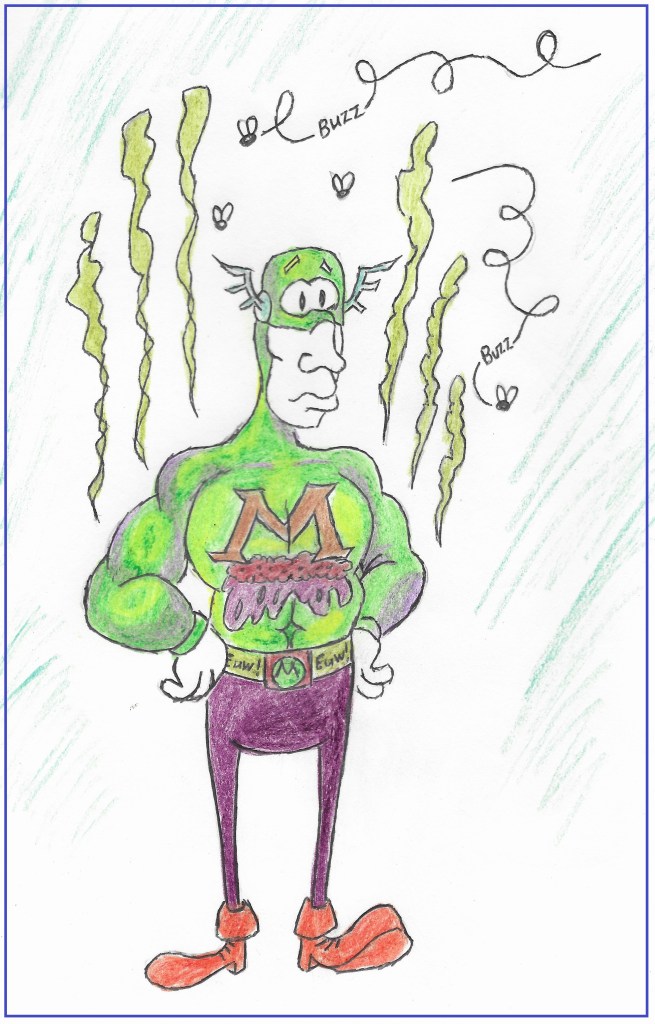 And so, according to mild-mannered reporter Dark Bent, that’s what Muck Man did to defeat the super-villain again. This time without generating a super-stench. And hopefully that will lead to a less-smelly world.