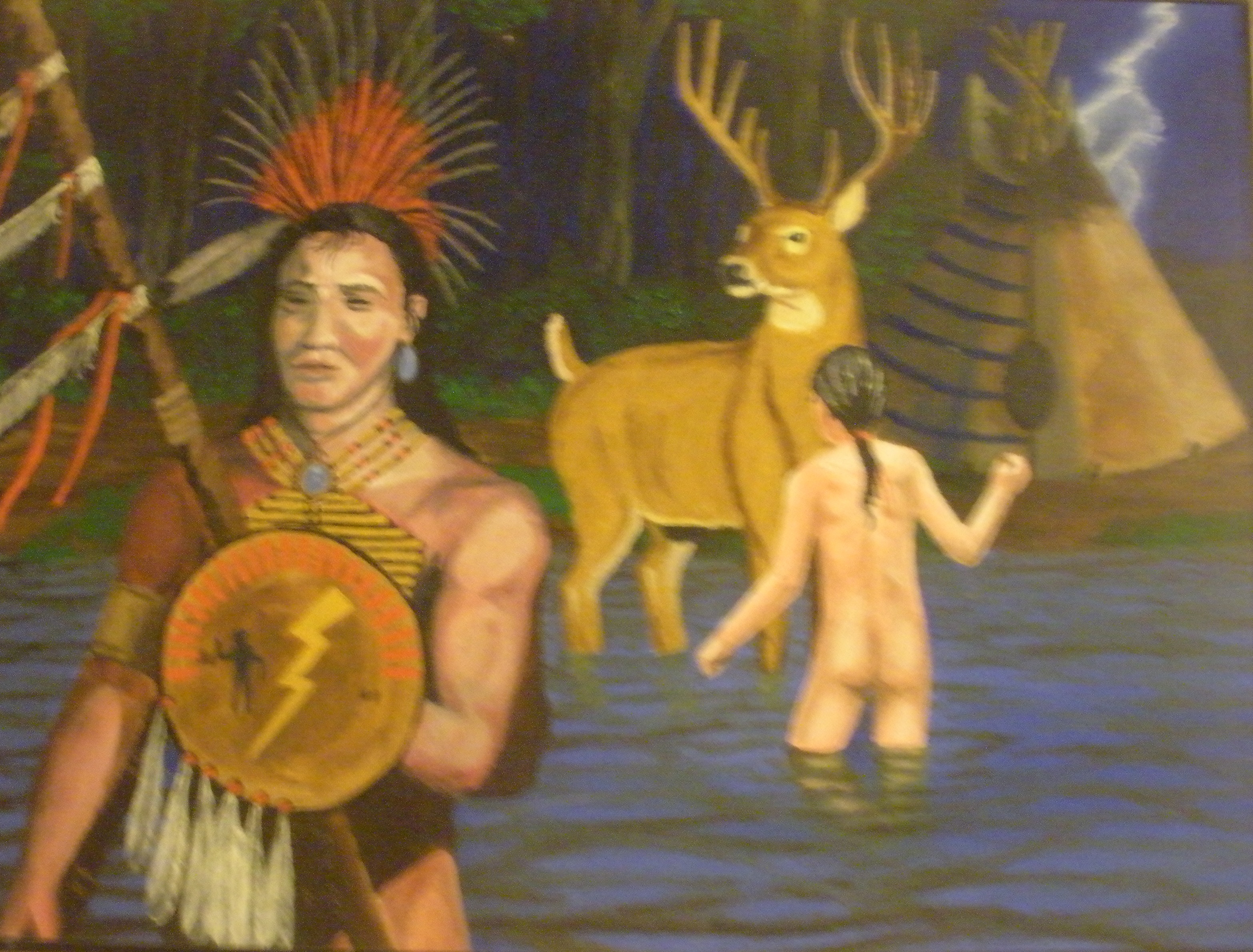 And, finally, this dream featured not only the spirit stag and the medicine man, but the bolt of lightning in the background. The Dakotah people say having a dream with lightning in it makes you a “lightning dreamer”, a magic man, or a shaman. So, I guess that qualifies me to be one.