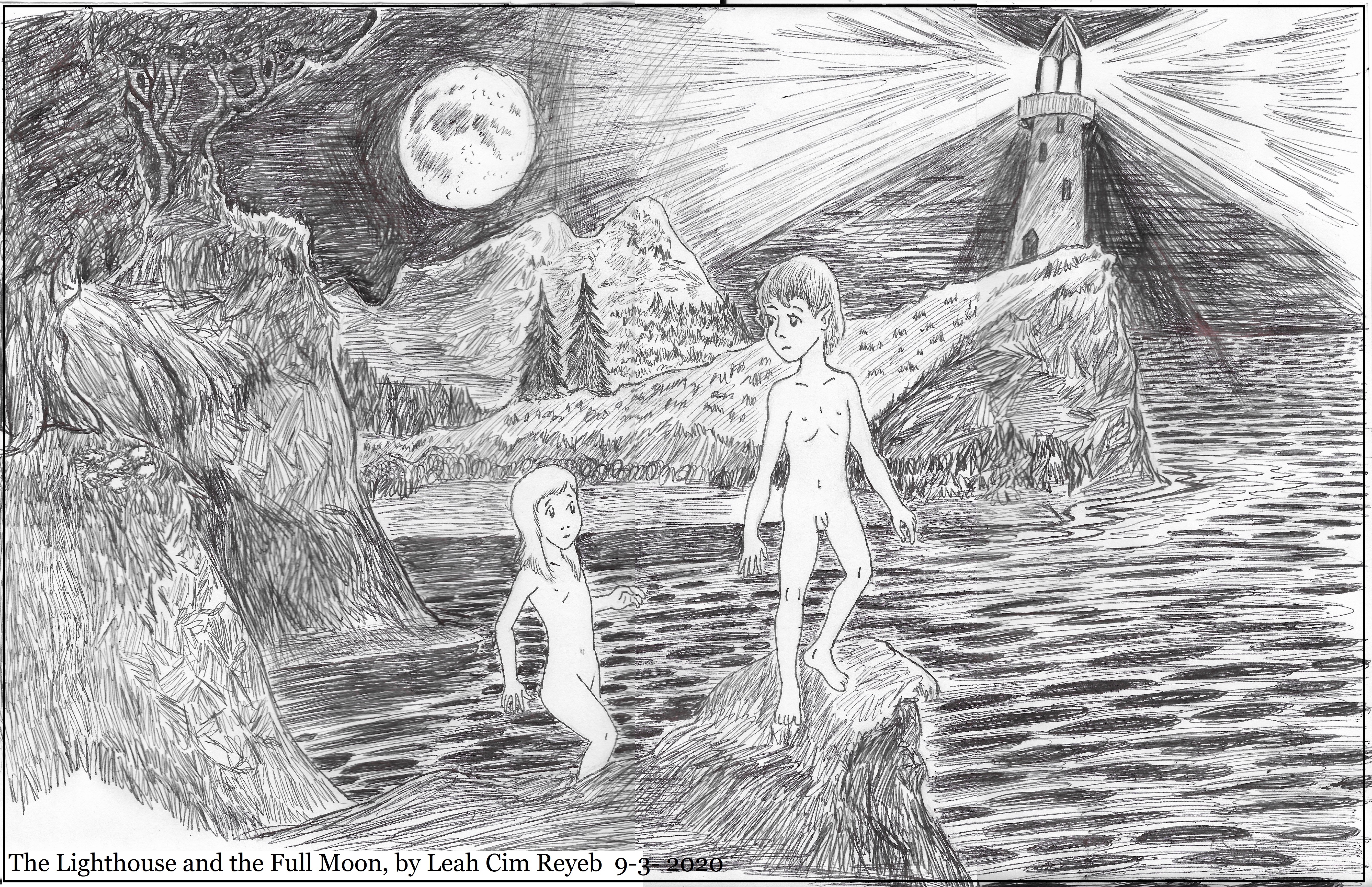 This one has shadows on everything. I exhausted three pens drawing shadows. Yet, there are no shadows on the child-figures. In the dream, they were glowing white ghosts.