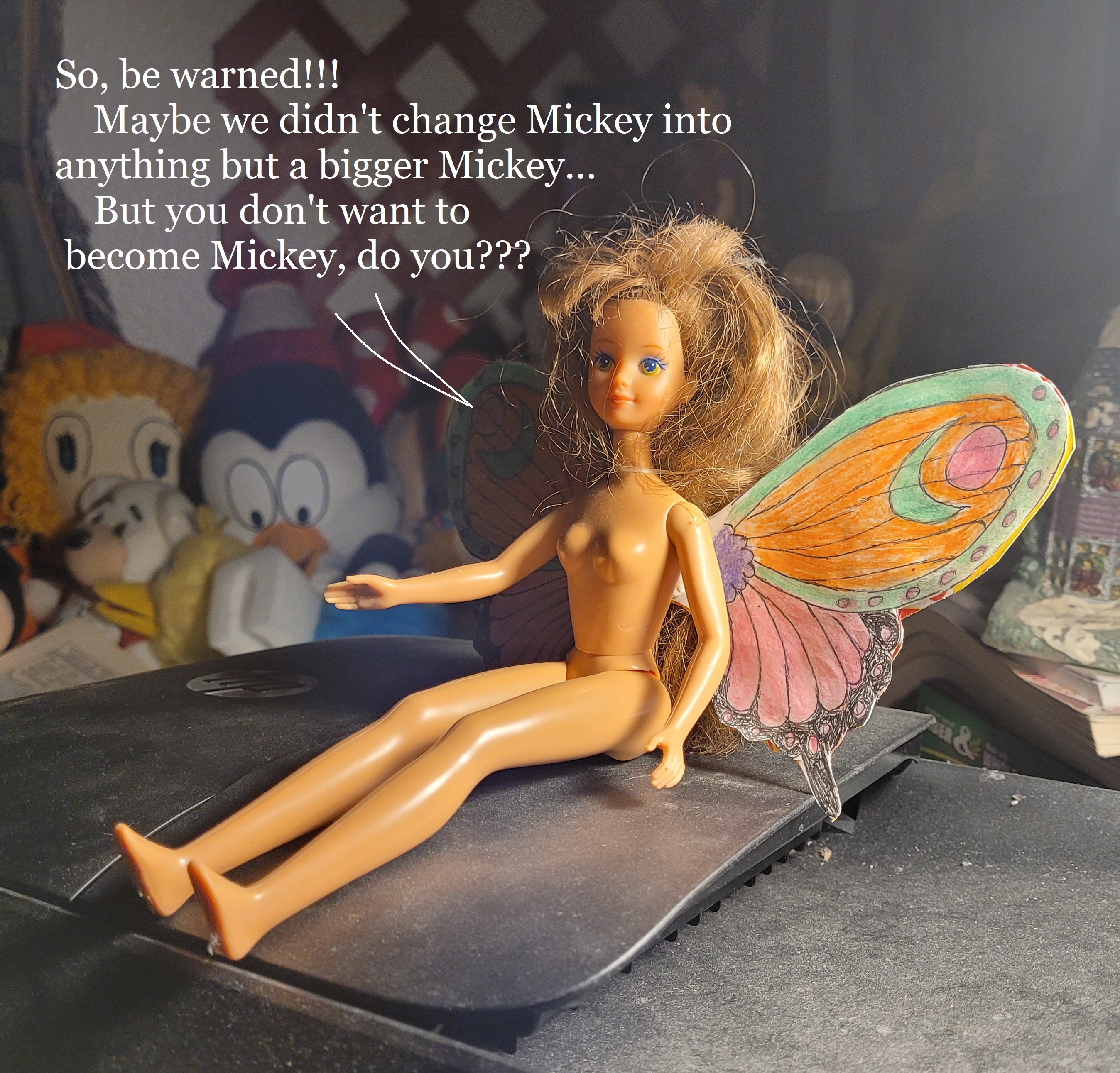 I have dreams with clowns in them that are not nightmares. Here the clown known as Mr. Disney is encouraging me to sing sad songs.