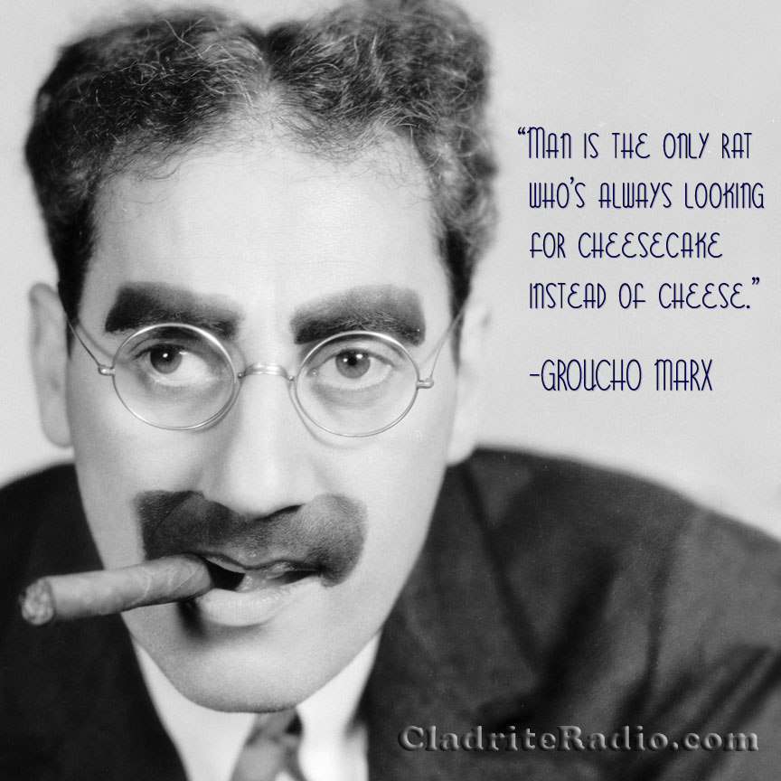 “I always listened to the words Groucho Marx was saying, even though he said them awfully fast and sneaky-like. I listened to the words. Other characters didn’t seem to listen to him. He didn’t seem to listen to them. Yet, how could he respond like he did if he really wasn’t listening? In his answers were always golden bits of wisdom. Other people laughed at his jokes when the laugh track told them to. I laughed when I understood the wisdom.”