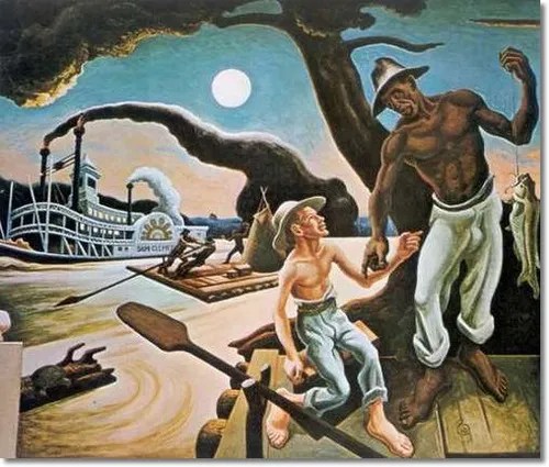 The entire purpose of this book is to demonstrate Twain’s ability to be a satirical stretcher of the truth, telling jokes and lies through the unreliable narrator’s voice of Huck Finn.