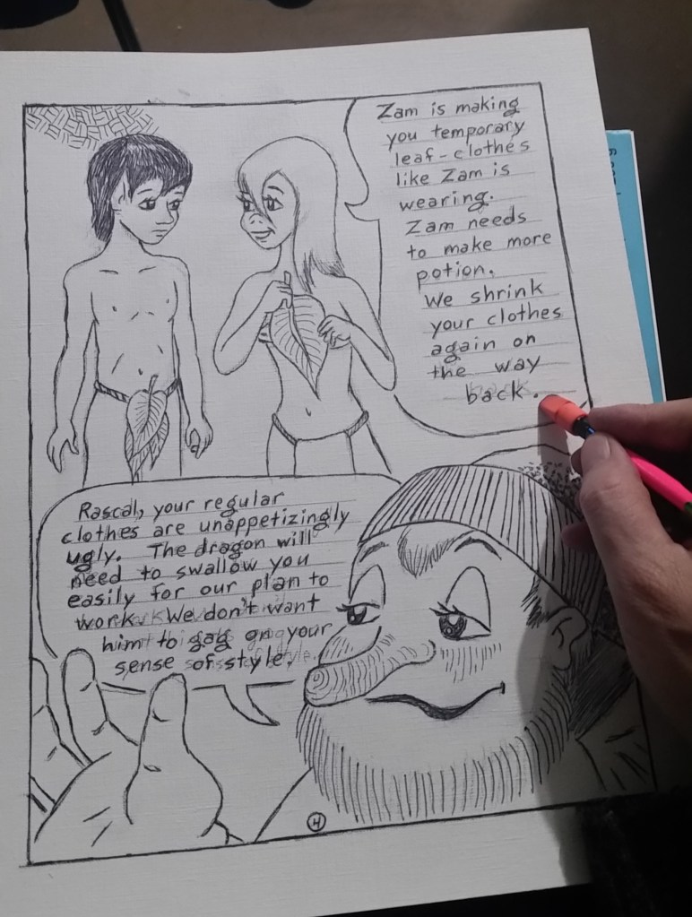 Me completing a page of my graphic novel, Hidden Kingdom.