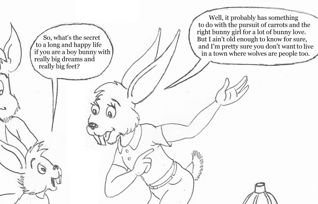 Okay, big miscalculation here. My old eyes can’t read the rabbit-talk in this cartoon. So, let me do something about it.