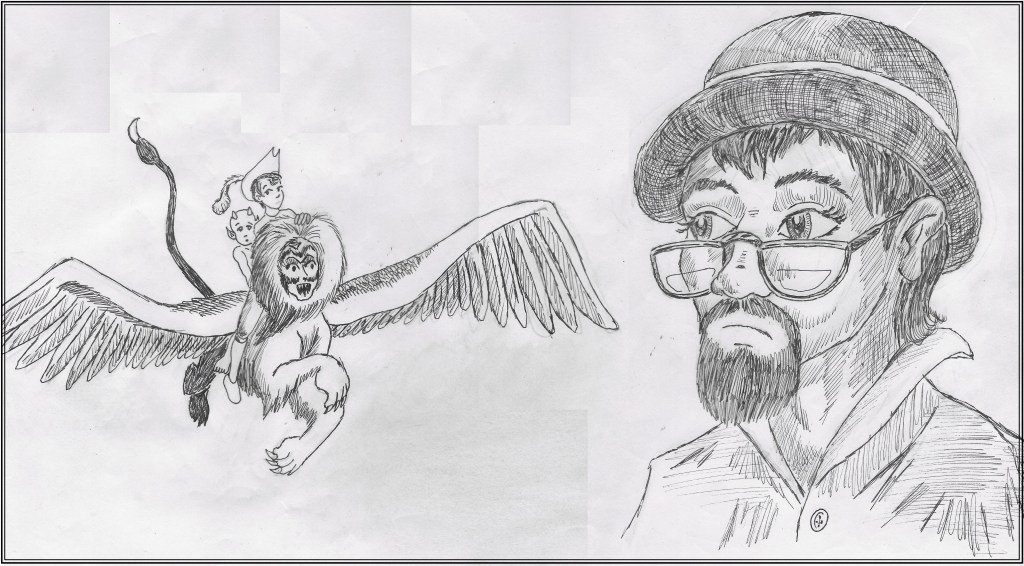 This is a detail from an illustration based on Golding’s Lord of the Flies. But it is also a picture of me and a childhood friend from back in the skinny-dipping days, based on an old black-and-white photo.