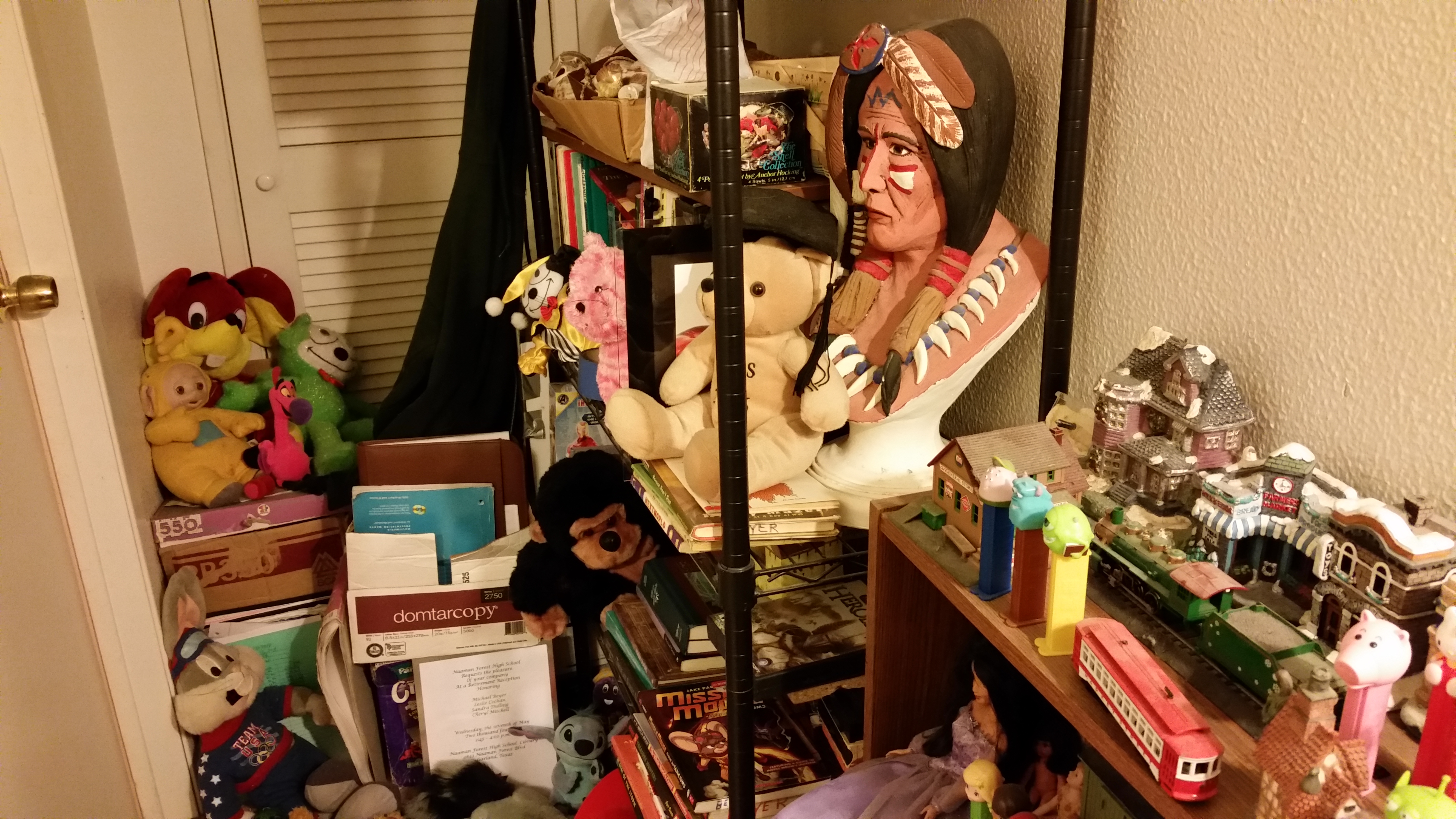 I do realize what a jumbled mess it is.  The shelves are all cheap Walmart kits that I built myself.  Some have been damaged over time and travel.  I have rebuilt them, restocked them, and rearranged them time and again.