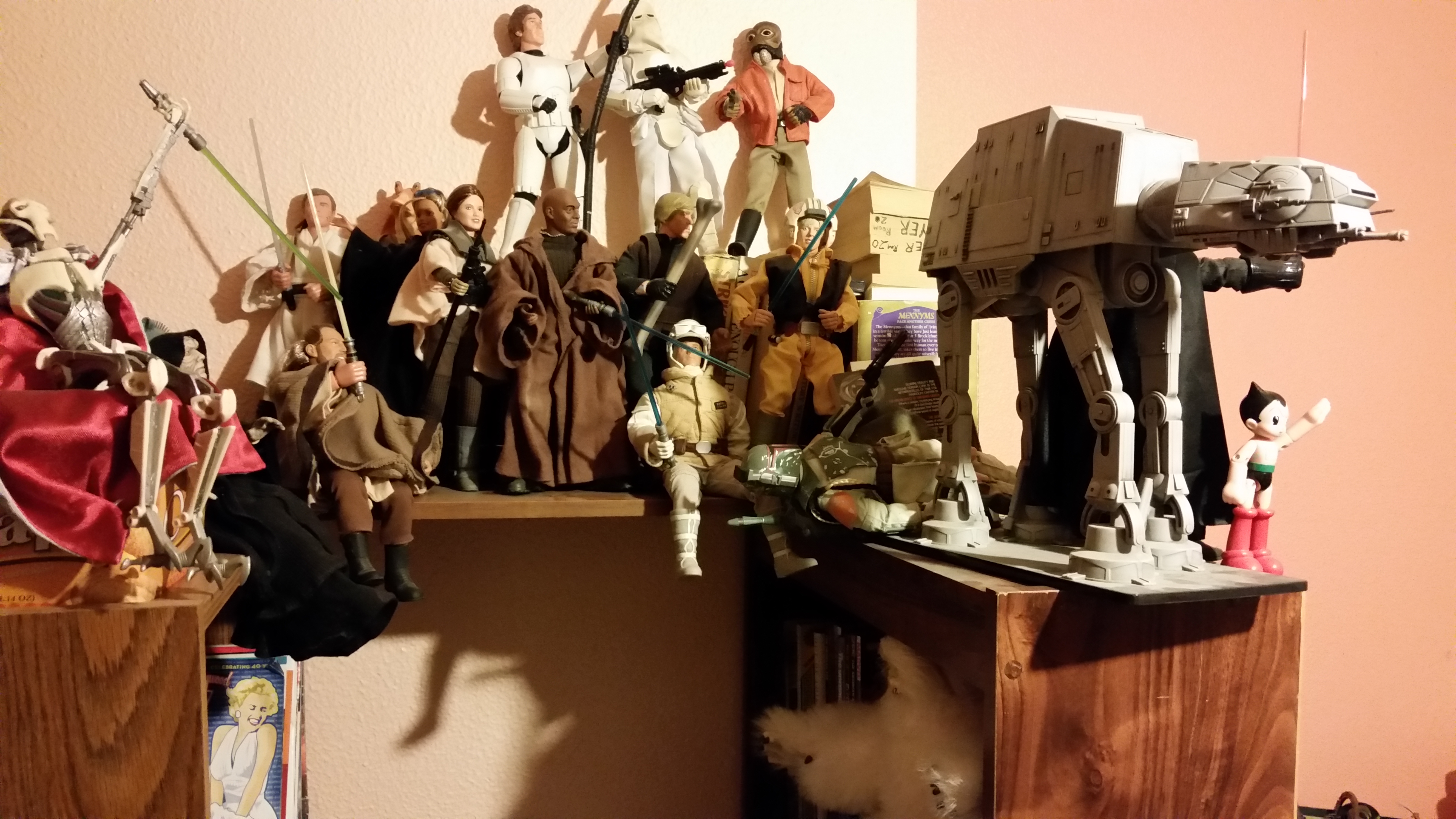 Let me show you the Star Wars shelf.  (It is not big enough for all my twelve-inch Star Wars action figures, but… oh, well.