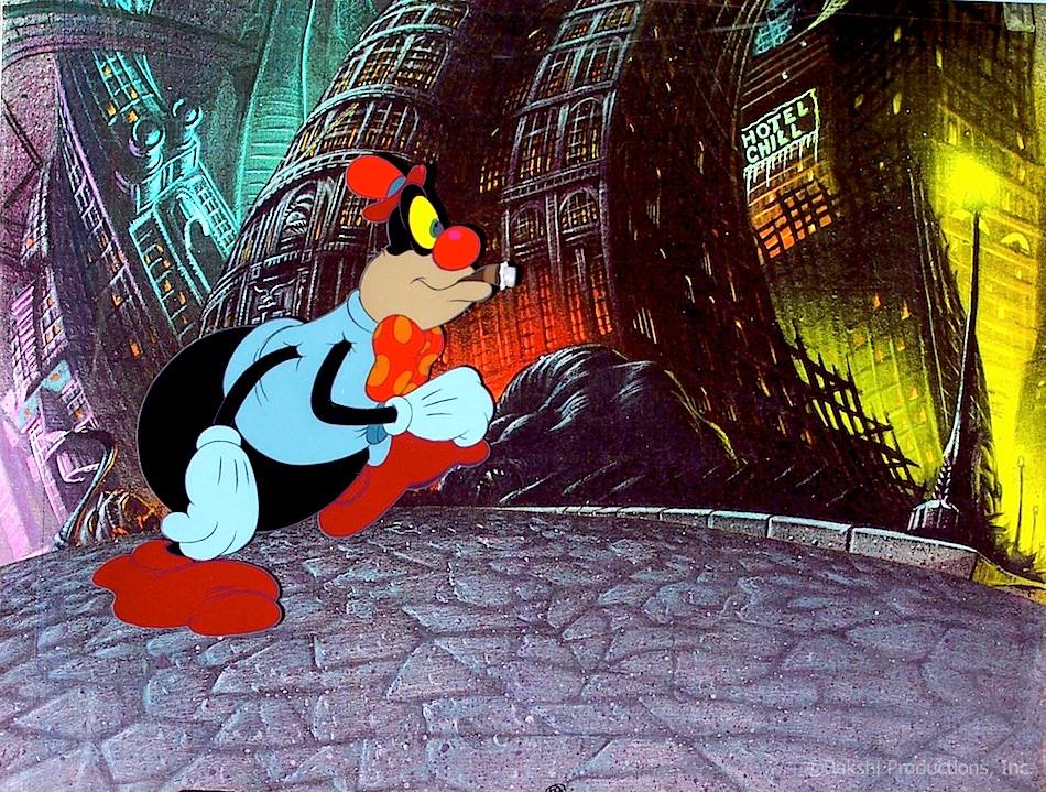 The film then blossoms into The Pastoral Symphony by Ludwig van Beethoven. This mythical landscape of cute cherubs and satyrs, bare-breasted centaurettes, and Greek Gods rendered in pastel hues represents the blooming of romance, lust, and love. There is celebration, complete with Dionysus and his invention, wine. There is courtship, attraction, and bonding. When the cherubs pull the curtain closed on the centaur couple, we also know what is happening behind the curtain even if it weren’t for the cherub whose butt becomes a red heart. And, of course, there is a great storm that comes along, both in the pastoral music and the action of the cartoon, representing the volatility and strife that occurs when we dare to love another. It does, however, subside for life to continue refreshed.