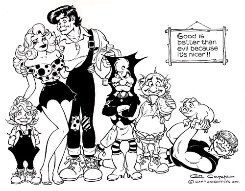 Anyway, I used to imagine myself a resident of Dogpatch, USA. I was a good, wholesome youth with a world of promise before him, just like Lil’ Abner. I think I am still a resident, only now, I’m not Abner any more. My oldest son, Dorin, more of a naive fan of the Fearless Fosdicks of the world, and I am now more like Pappy Yokum, listening meekly to Mammy’s commands until the time comes when I am needed to step up and be the mouse that roared.