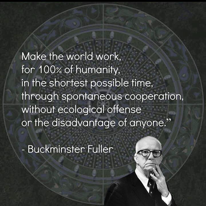 If you don’t know who Bucky is, as you probably don’t because he revolutionized the world in the 60’s and died in the 1980’s, Richard Buckminster “Bucky” Fuller was an American architect, systems theorist, author, designer, and inventor. He is credited with the invention of the Geodesic Dome. But he was so much more than that. He wanted to build things that made better sense, in a practical sort of way, than the way we actually do them. He built geodesic homes because he felt a home should maximize space and use of materials and minimize costs and amounts of materials as well as environmental impacts. He is the one who popularized the notion of “Spaceship Earth”. He wrote and published more than thirty books, and gave us a variety of truly wise insights. He promoted the concept of synergy. He said, “Don’t fight forces, use them.” He also pointed out, “Ninety per cent of who you are is invisible and untouchable.” He was a man full of quotes useful for internet memes.