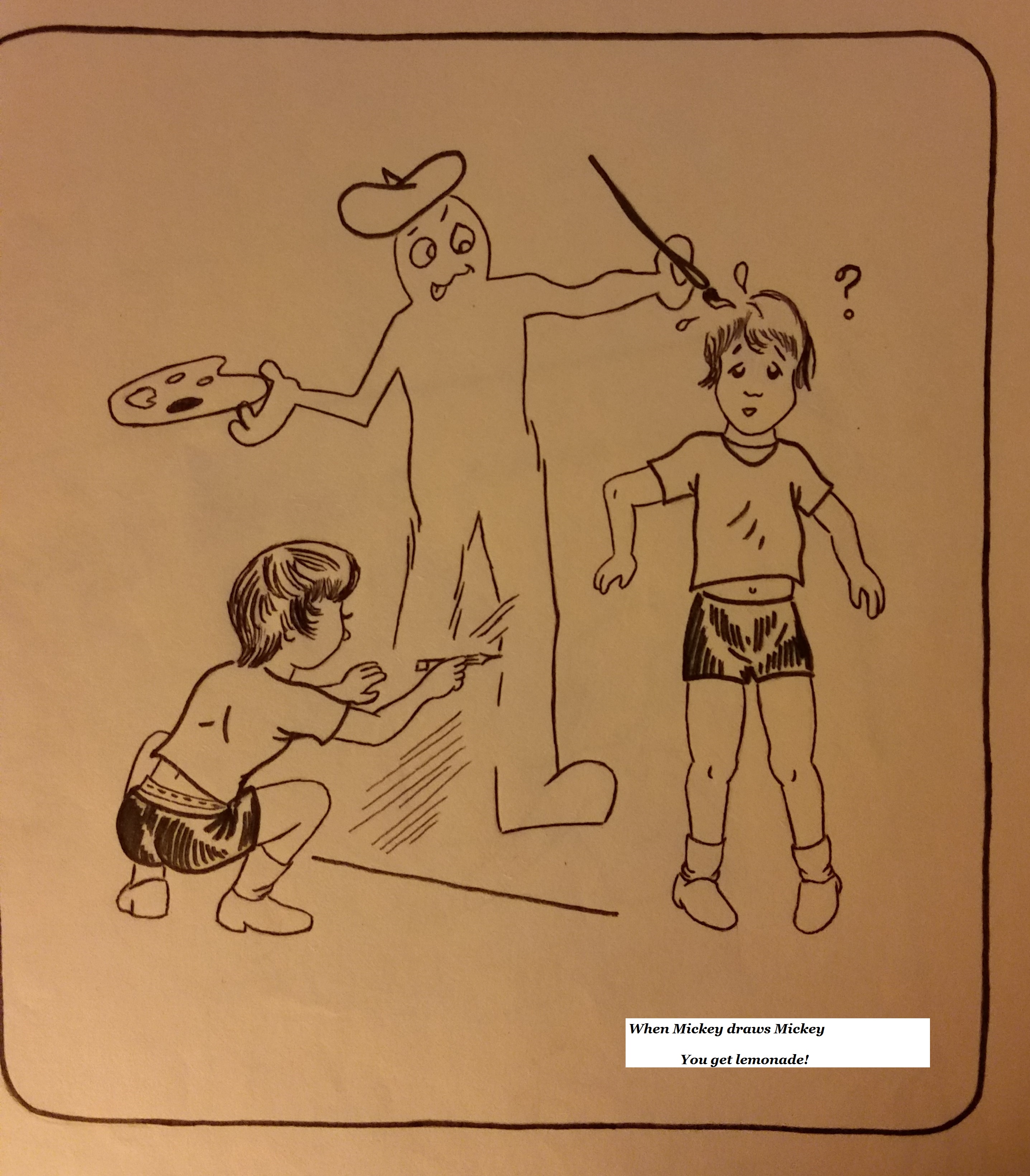 When the burglar came in… burglars always come in when they have something going for them like the dog sulking… the dog didn’t eat him. So he came upstairs to the room where I was working on cartoons.