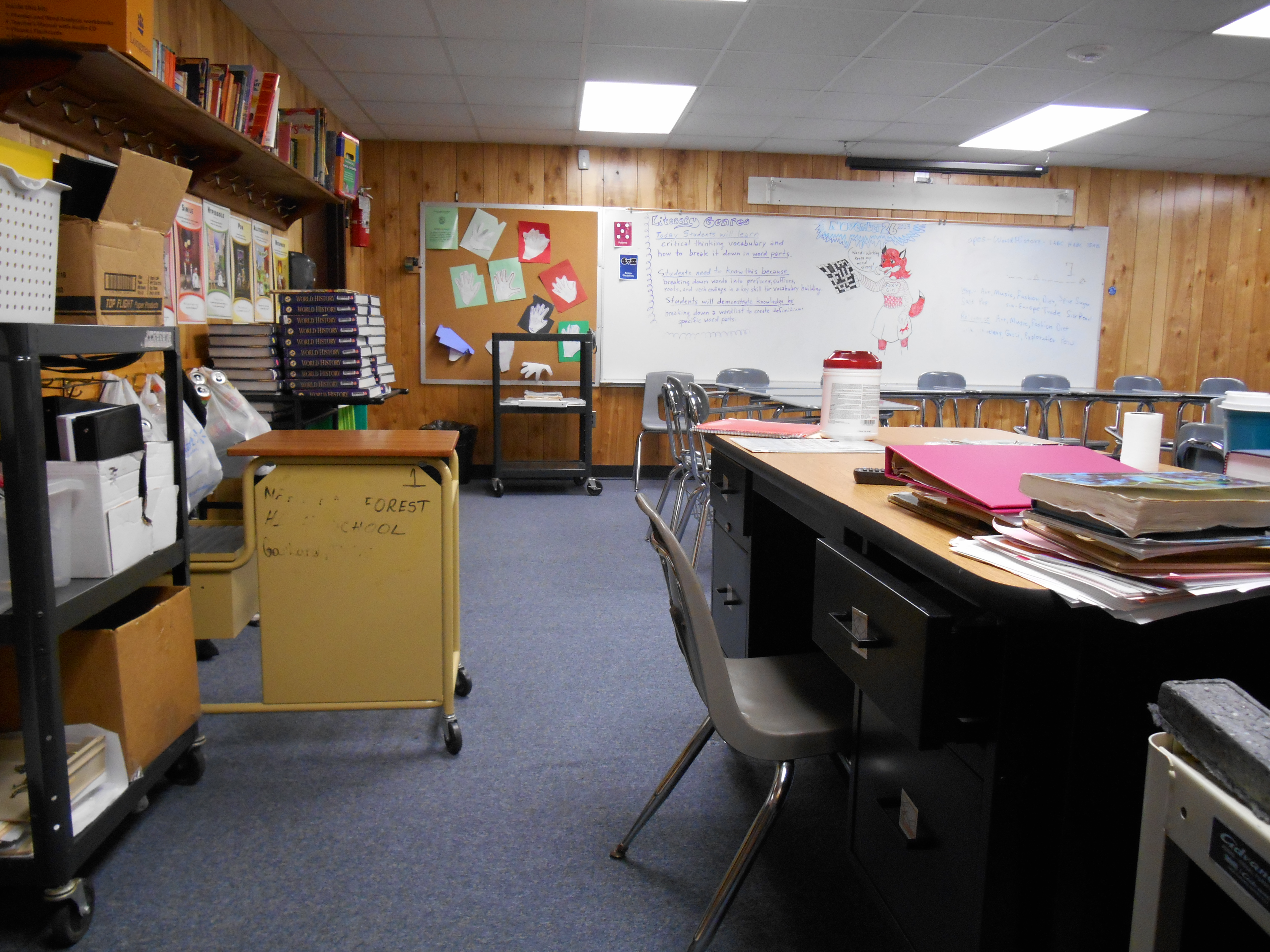 It works. We had a poster project to do in groups of four. They were supposed to create a diagram of the mechanics of the four seasons of the year, with a sun and four representations of the earth with its axis and equator tilted properly in relation to the sun. That’s the kind of assignment that can result in the explosion of the science lab or the total cannibalization of the substitute. But I made it successfully work in four out of five classes.