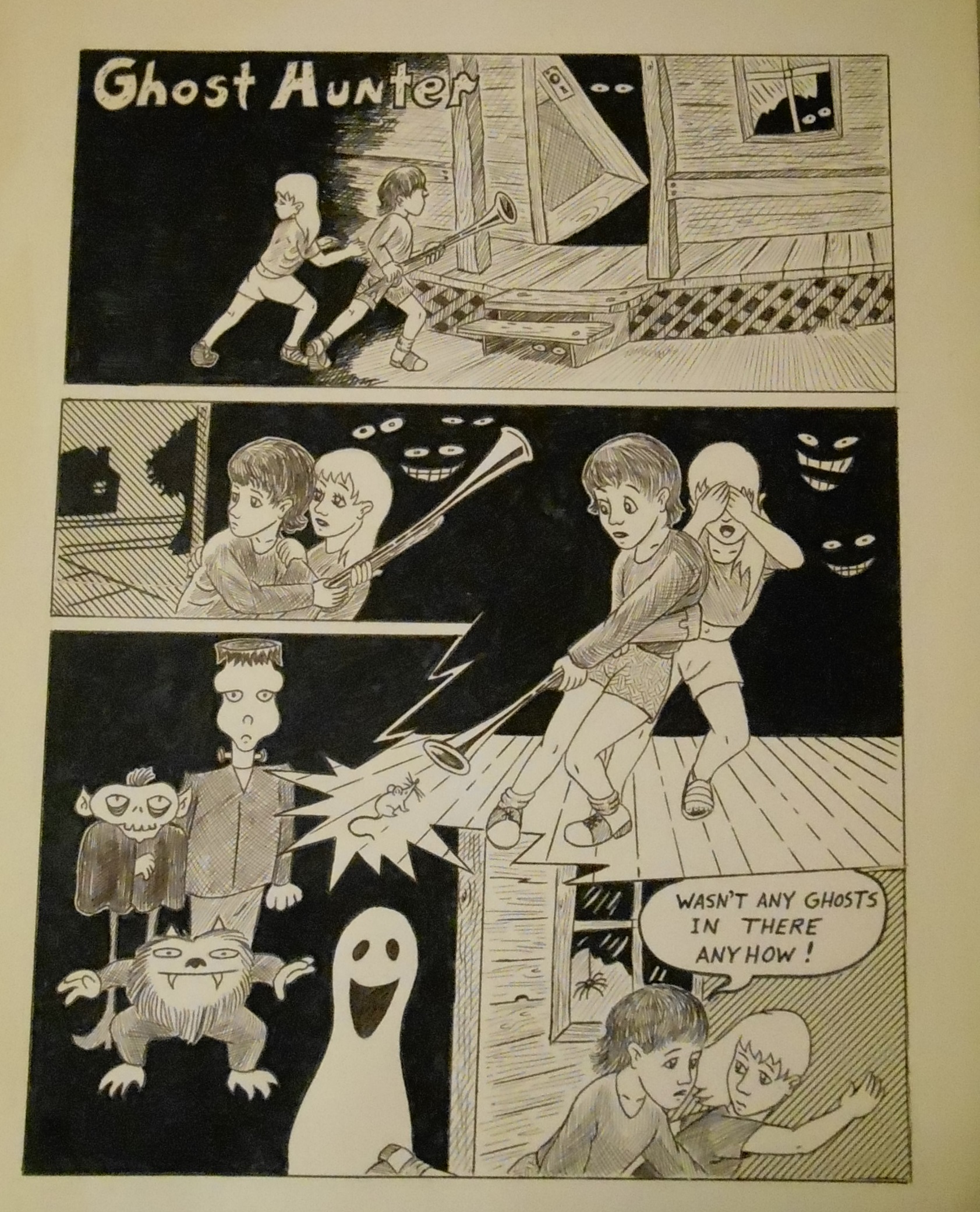 I am forced to cheat a bit today. I am ill, and I am trying hard to keep my ghost inside. But it is only cheating a little bit. I am posting today. I am using old cartoons. I am doing less than the target 500 words, but I have gone over the target all week, and it averages out. So this is a ghost post… not because a ghost writer is posting it, but because this writer is ill and trying not to become a ghost. So here are the ghost hunters again. You will help them most by NOT pointing at the ghosts and screaming. That kind of scare can’t be good for their health.