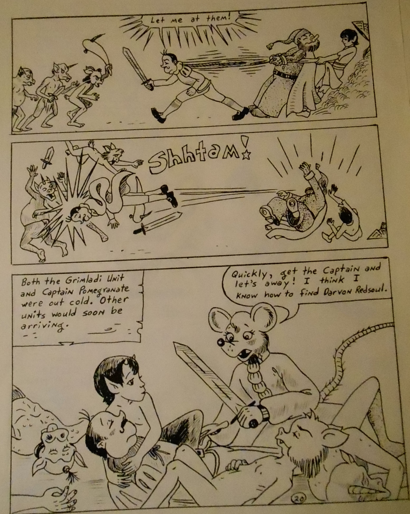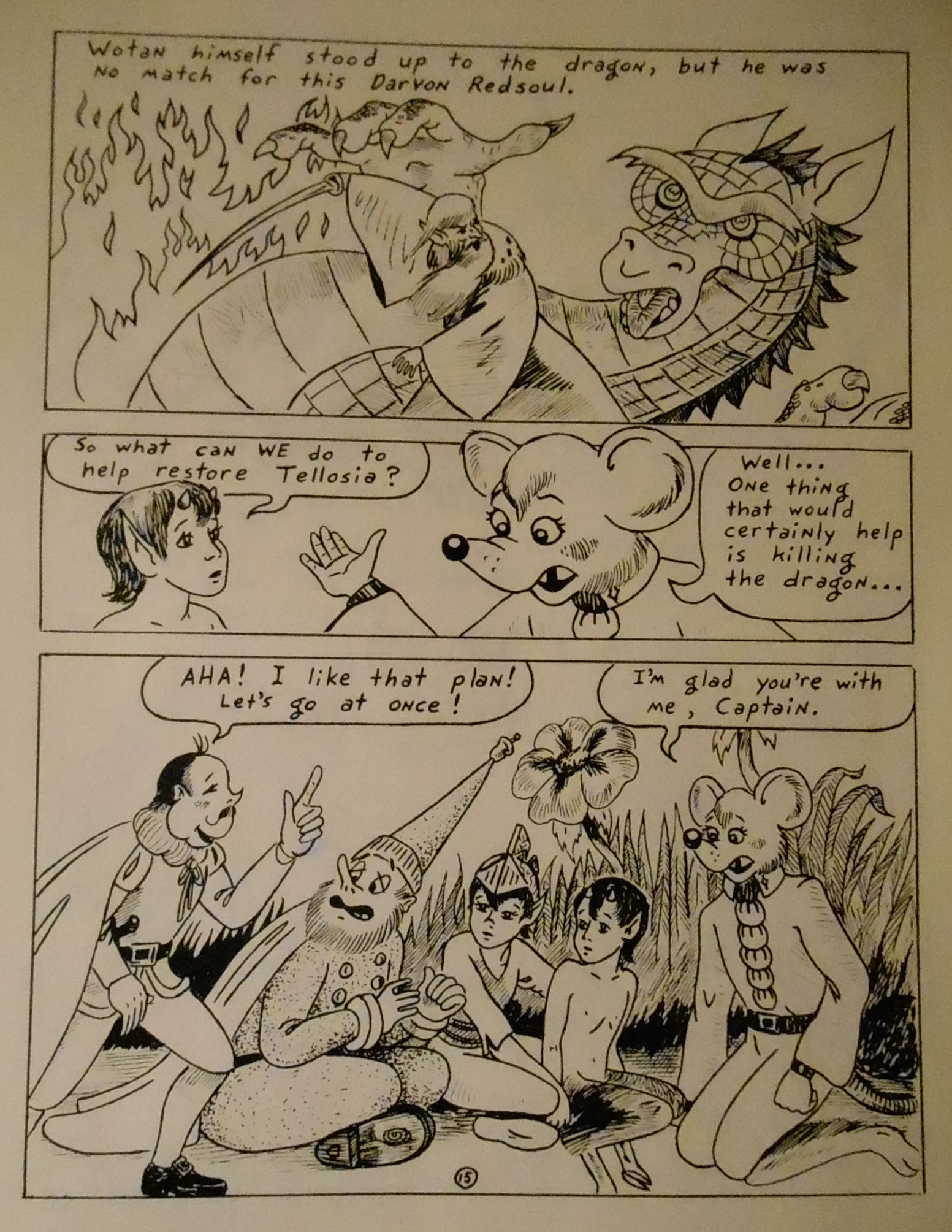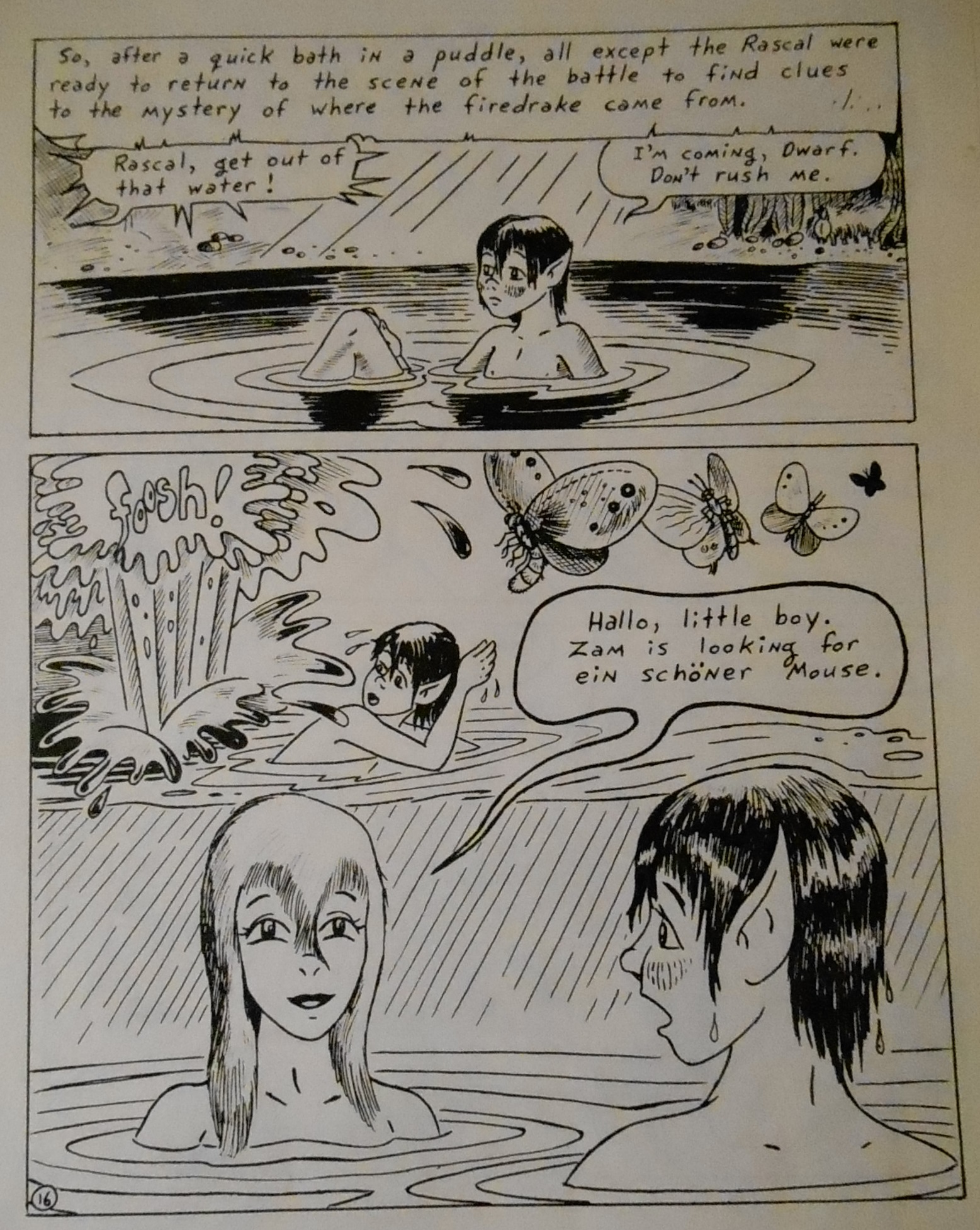 Okay, there you have pages 1 to 14 in two posts, badly photographed (the art is not that gray and dreary in real life, I promise).  I will post the remaining 7 pages of chapter 1 before the week is out.  I don’t know how much more of this I can still dig out, but I will try, and I work on this story to get it in a more publishable state.
