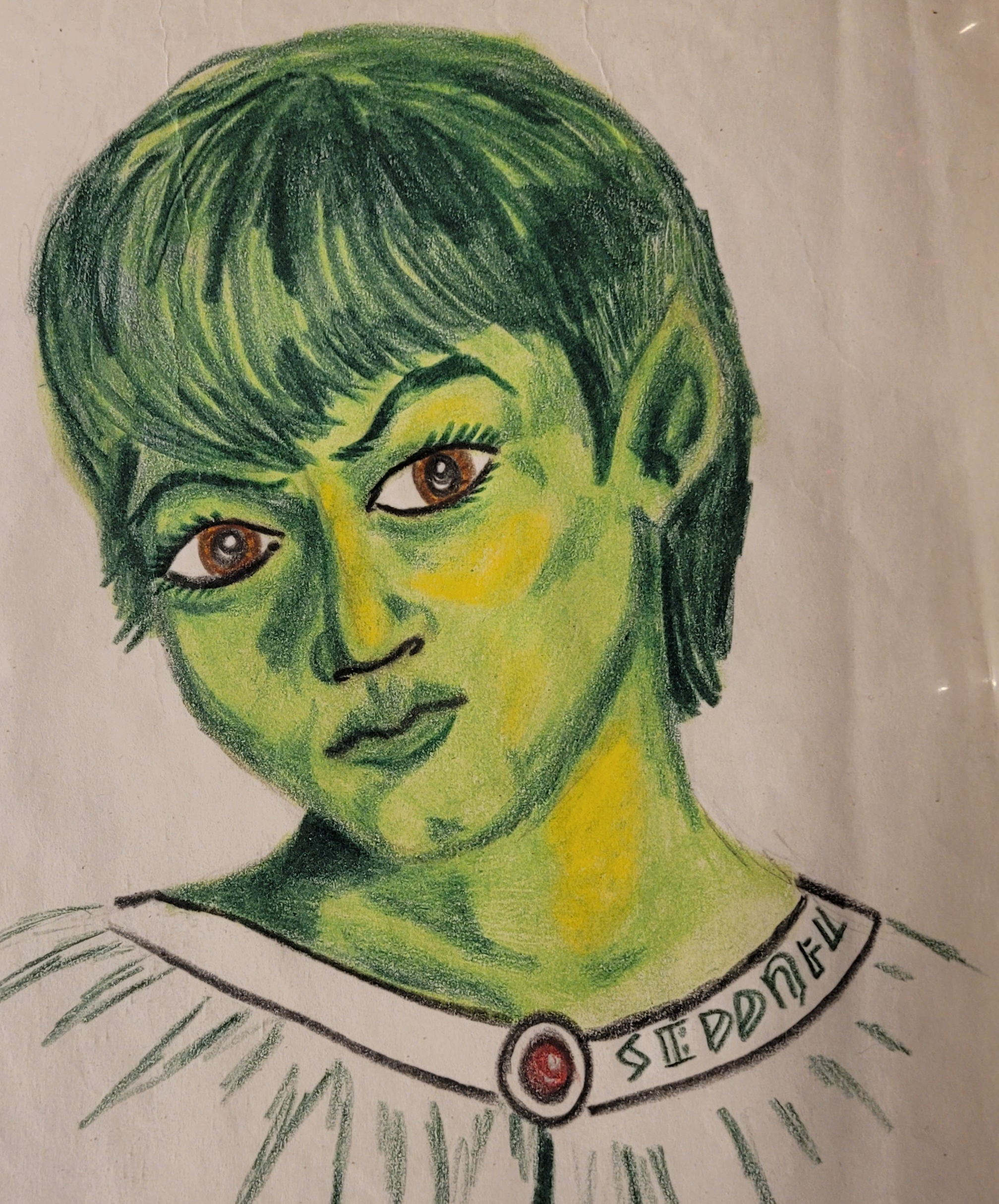 This is a colored pencil drawing I created in the 1990s. It is modeled on a young Hispanic boy who lived in the same apartment complex as I did. He was not green. At least I don’t think my color blindness was that bad back then.