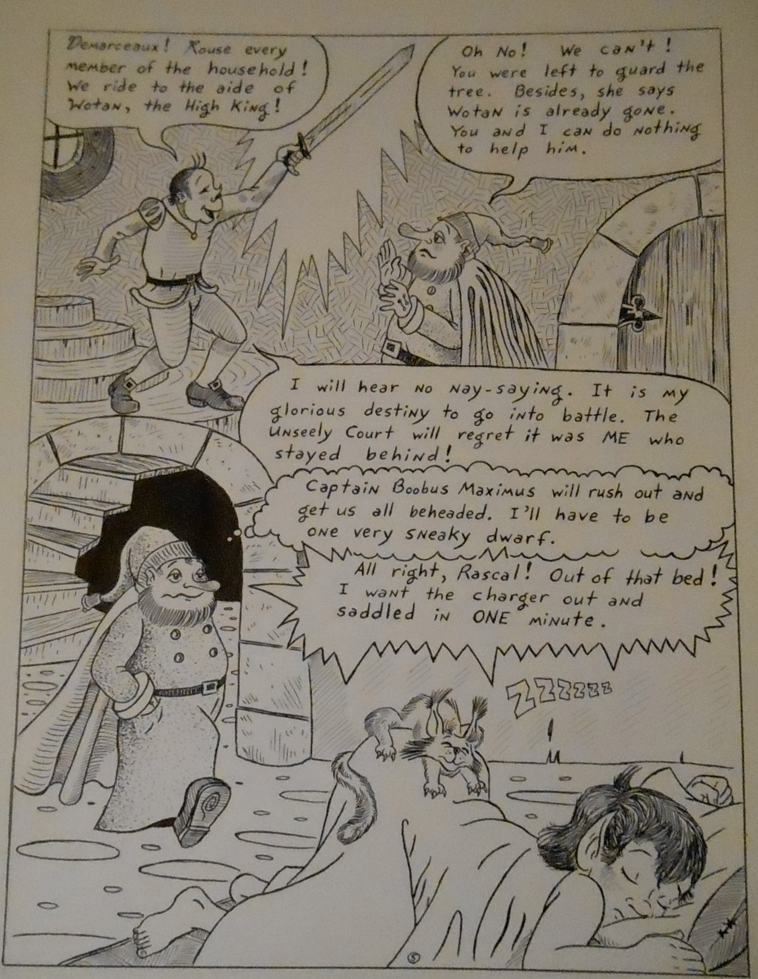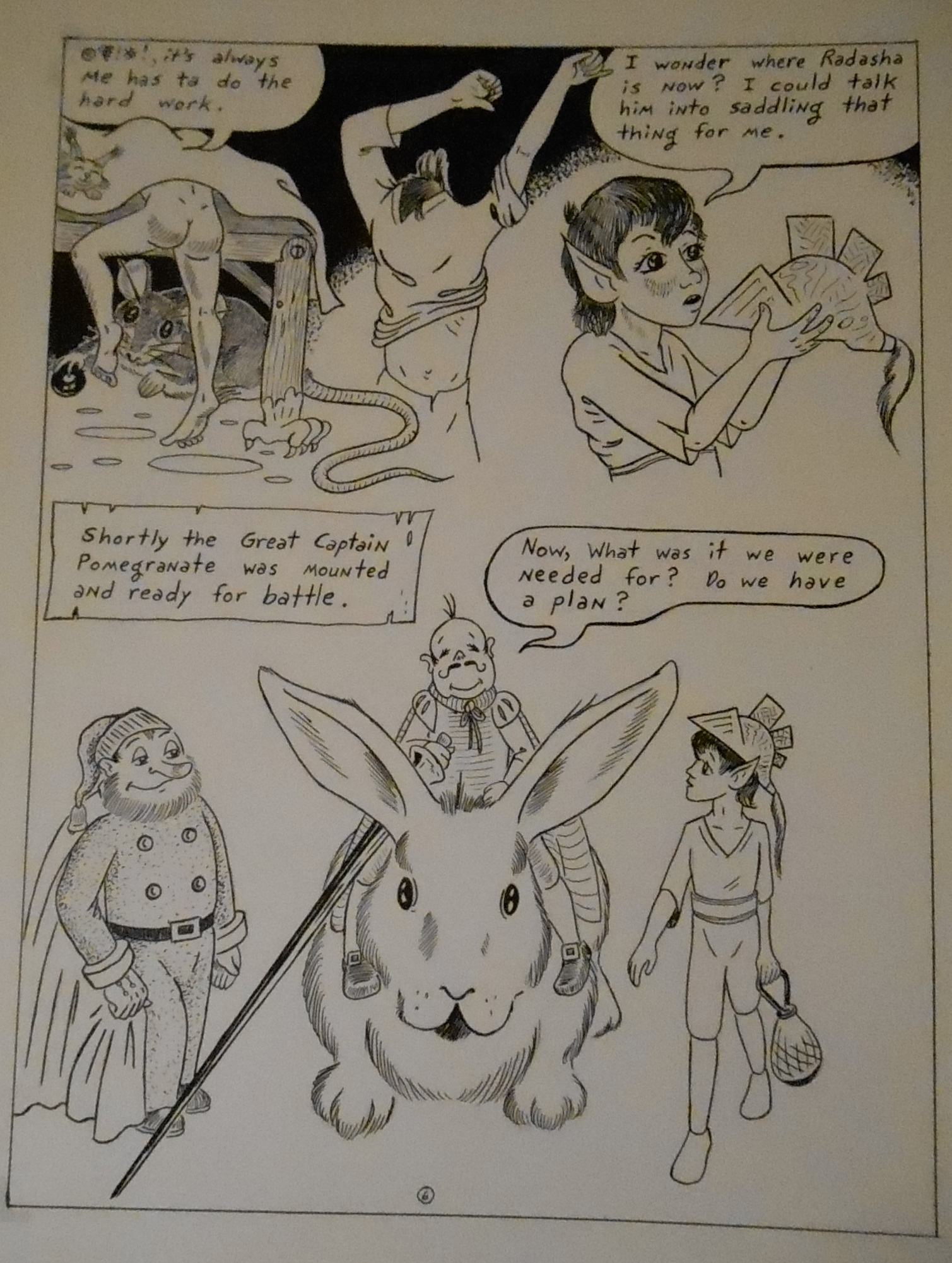 In the 1980’s I tried my hand at a graphic novel. It didn’t go very far. I applied to WaRP Graphics (Wendy and Richard Pini) for publications options. They weren’t prepared to take the project on. So, it has been in my portfolio in the closet for 30 plus years. Here is a sample of the beginning;