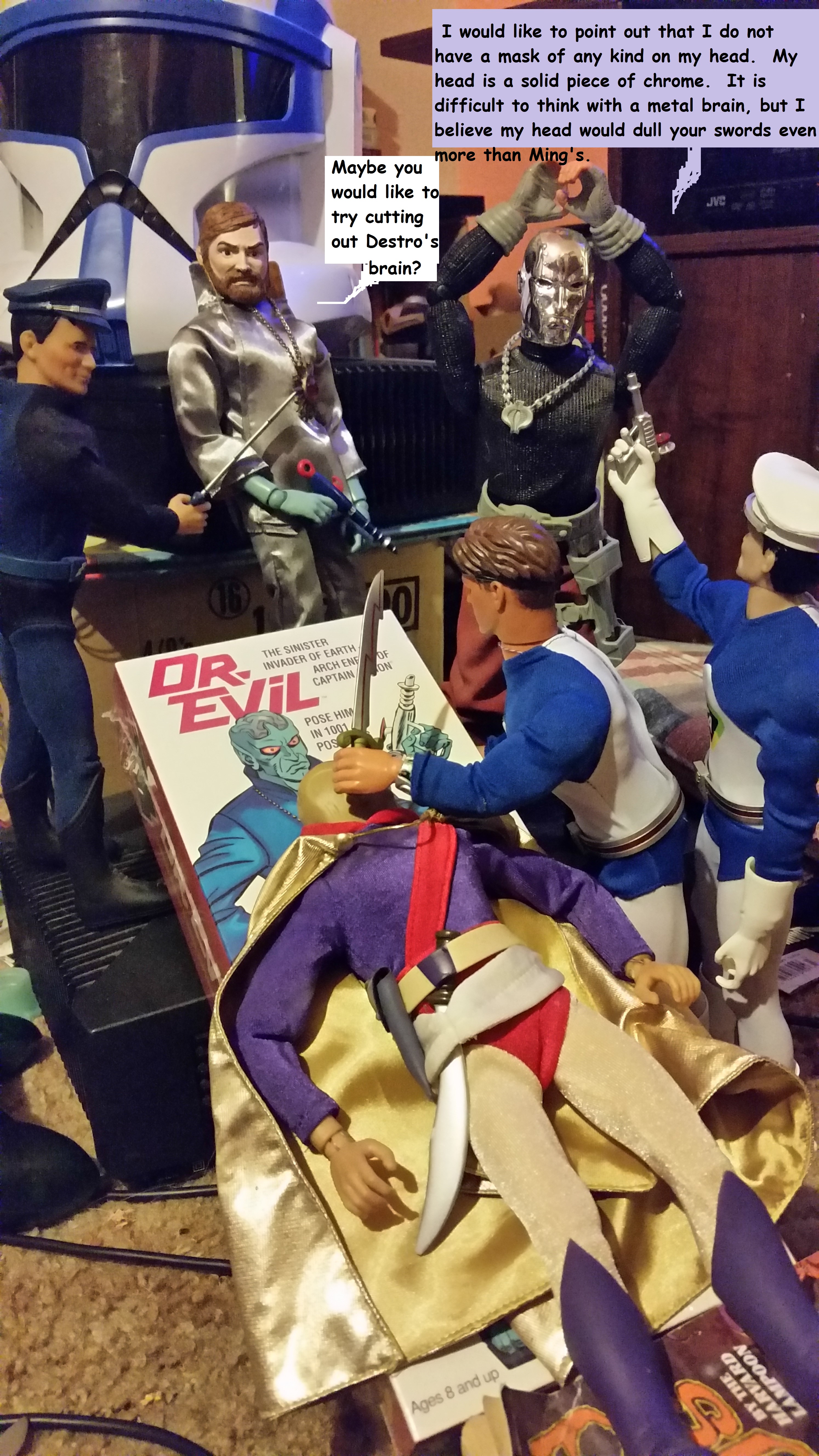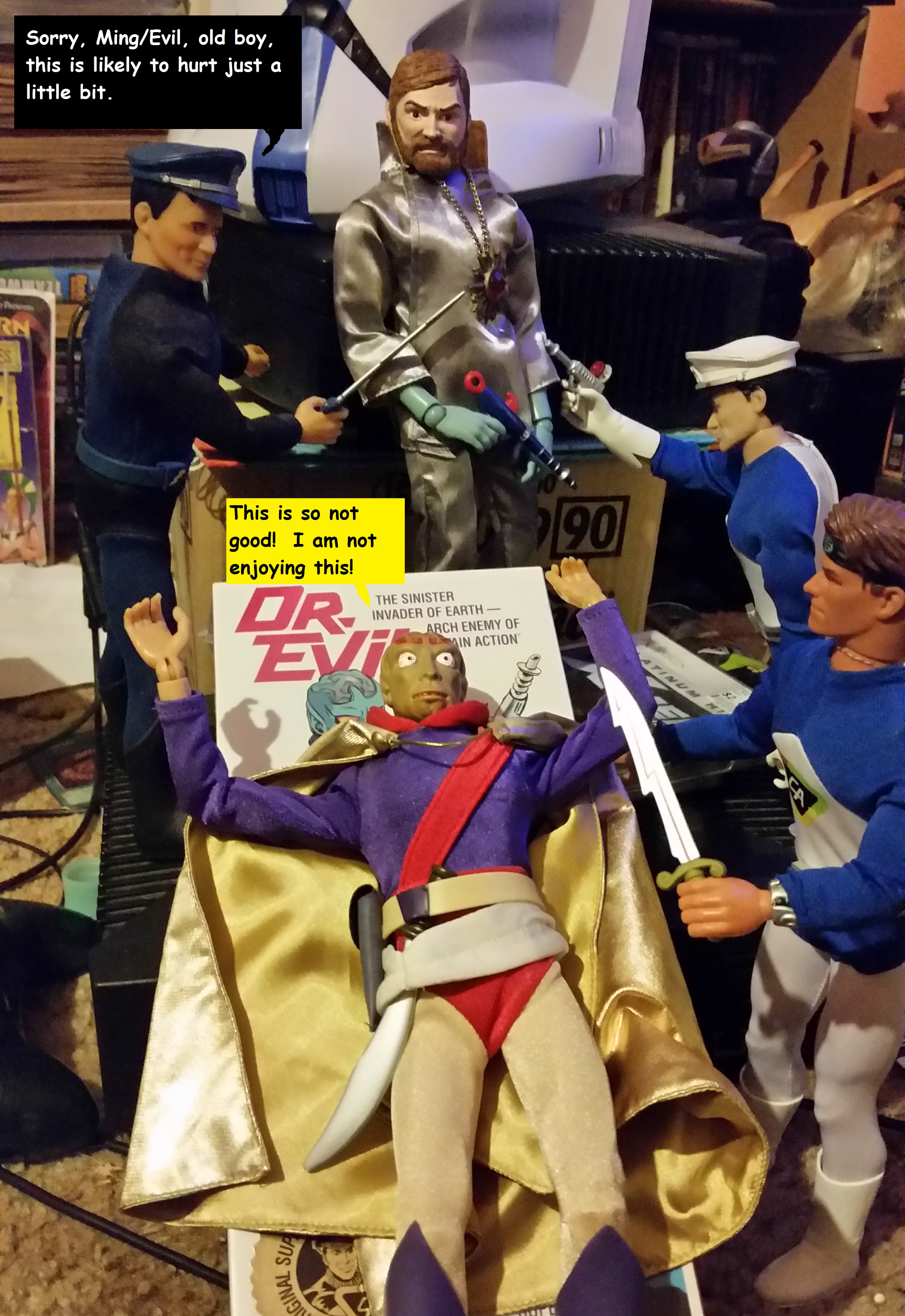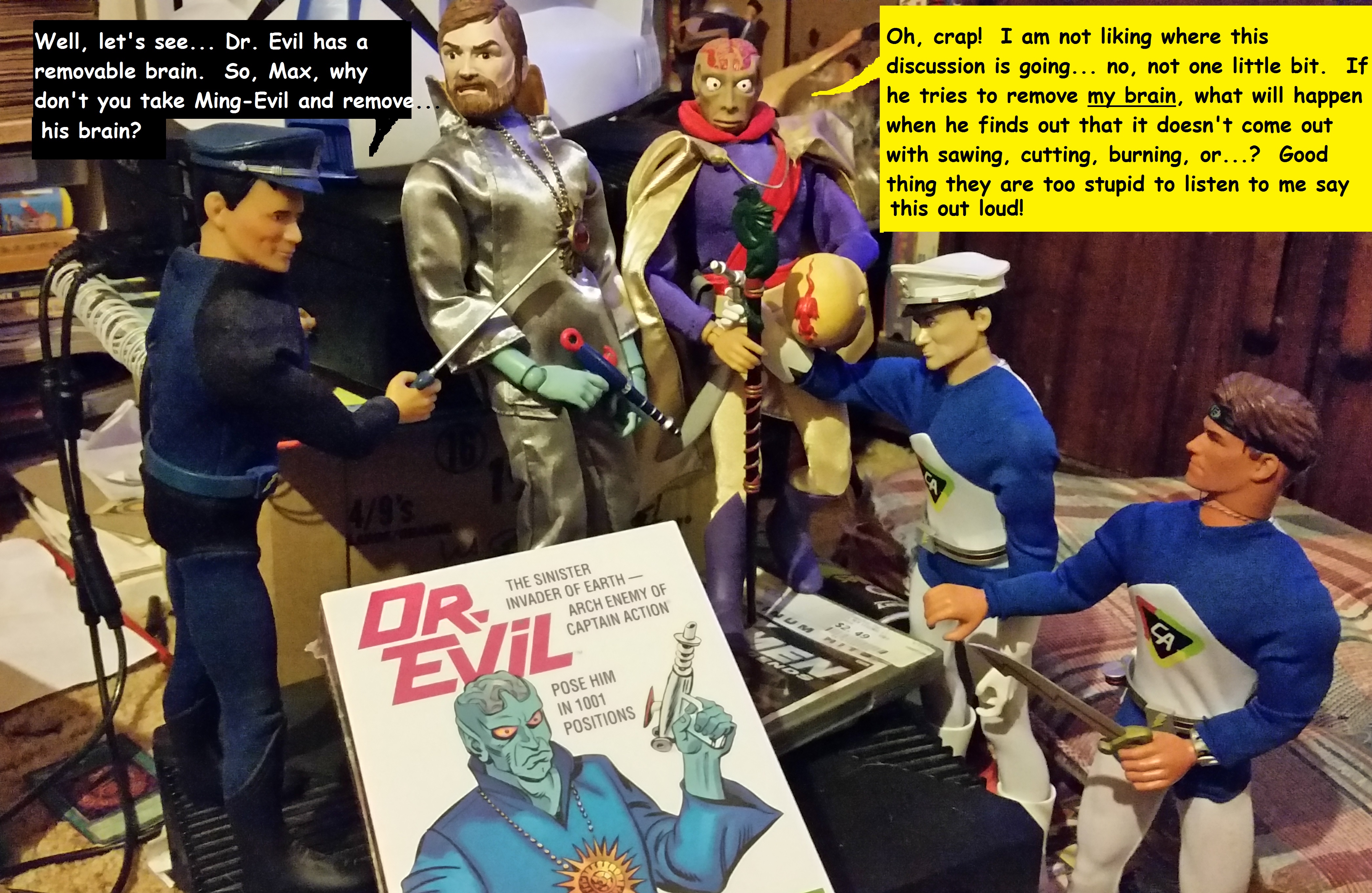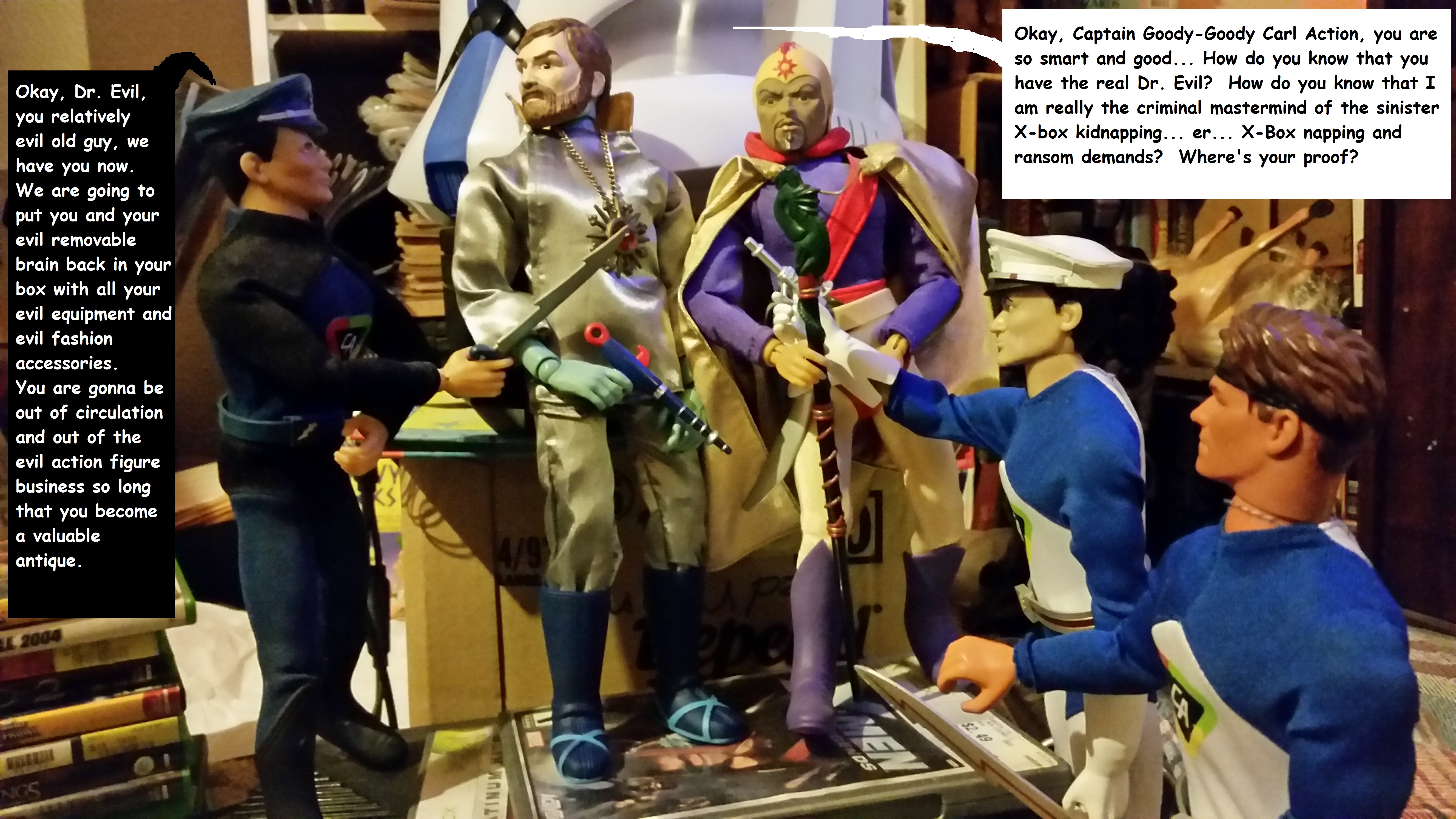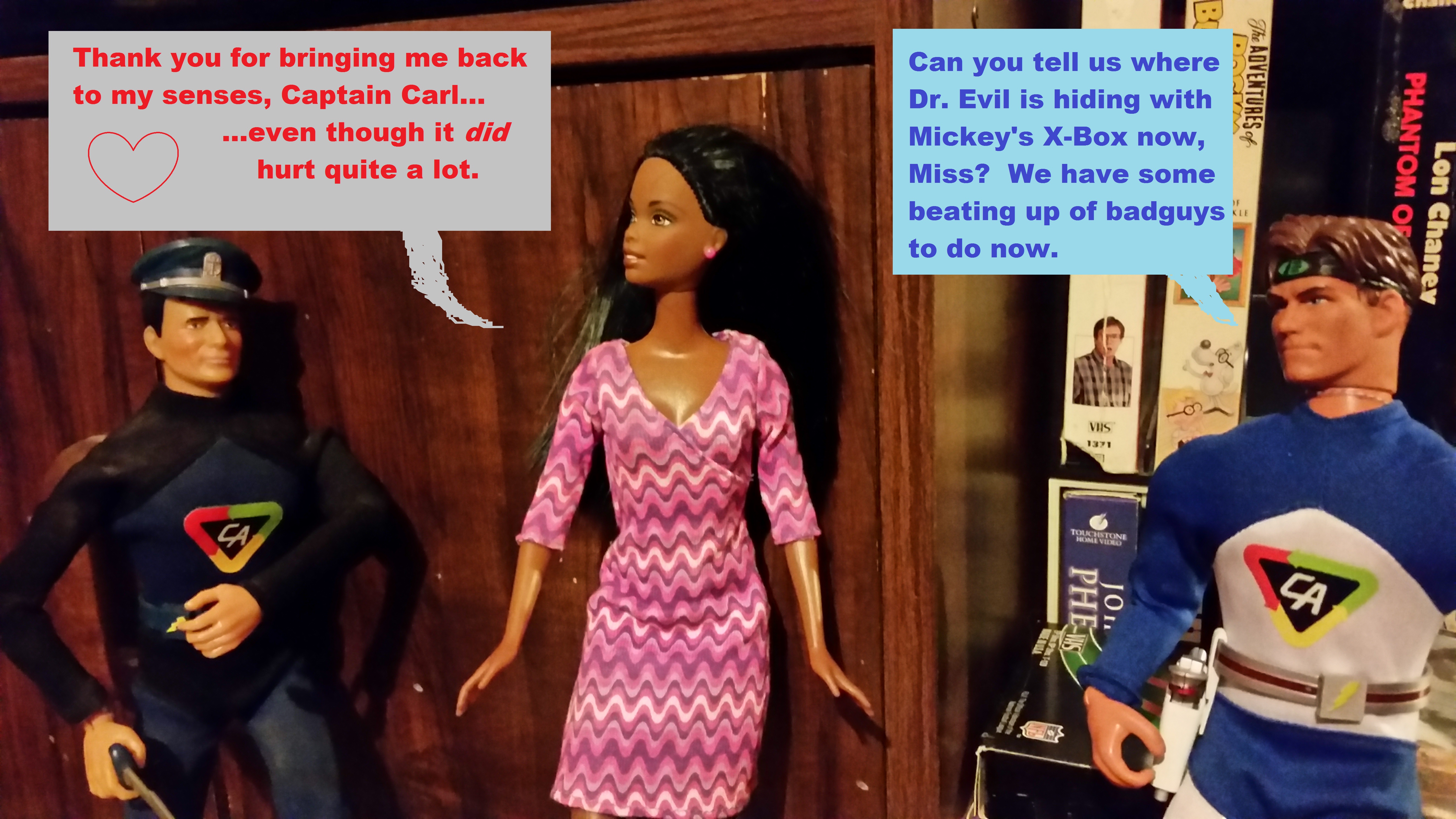 As a young man, I regained my dolls… I mean Action Figures, and tried to restore them (not play with them… I never said play with them). When I got married, my wife and I actively began collecting them. She was initially charmed by my love for my old pieces of plastic. We began looking for what was out there. Captain Action and G.I. Joes for me, Barbies for her. When she lost interest (or found a cure for that particular mental aberration), I kept on. The rules for collecting included; Twelve inch tall figures. Never pay more than $20 for a toy. Never spend more than $50 a month. Find rare dolls for little money. Rescue dolls who somebody once loved and played with, or that are on the verge of the ignominious end to be found in the department-store dumpster.