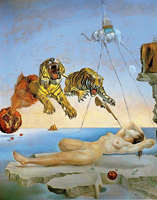 Today I am waxing on about the wonderful, mad, mad, mad genius of surrealist art, Salvador Dali. He was born in 1904 and died in 1989. And that’s really about all that I want to tell you about the physical parameters of his boundlessly creative life. He was alive in this world until I was already thirty-three. So, I got to see him on television and watch video biographies of him and his incredible artwork. Ones that included interviews. And if I get into his public persona, that will eat up the rest of his essay. Instead, I need to talk about his art, and how it modifies and magnifies what I am meant to be.