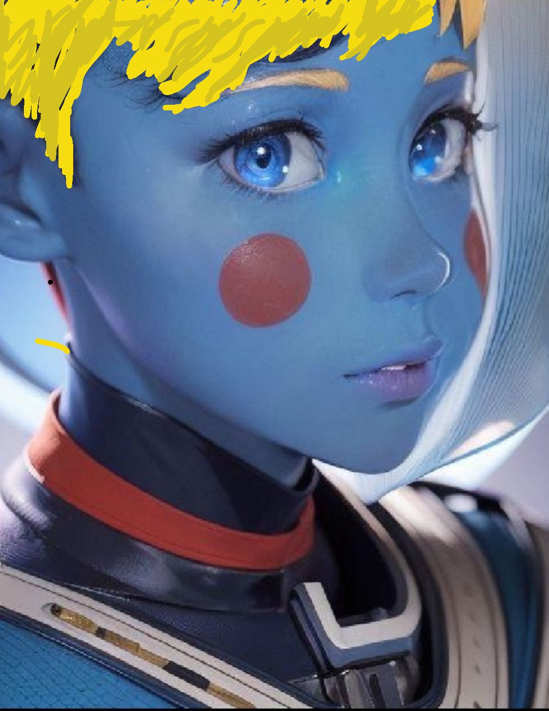 Nebulons are blue-skinned humanoids with unique survival abilities. They tend to mostly inhabit deep space and are generally not planet-bound. They also are uniquely resistant to radiation of all kinds. The blue skin absorbs radiation and transfers it along the skin to the two red organs on their cheeks that safely dampen and release the radiation back out into space.