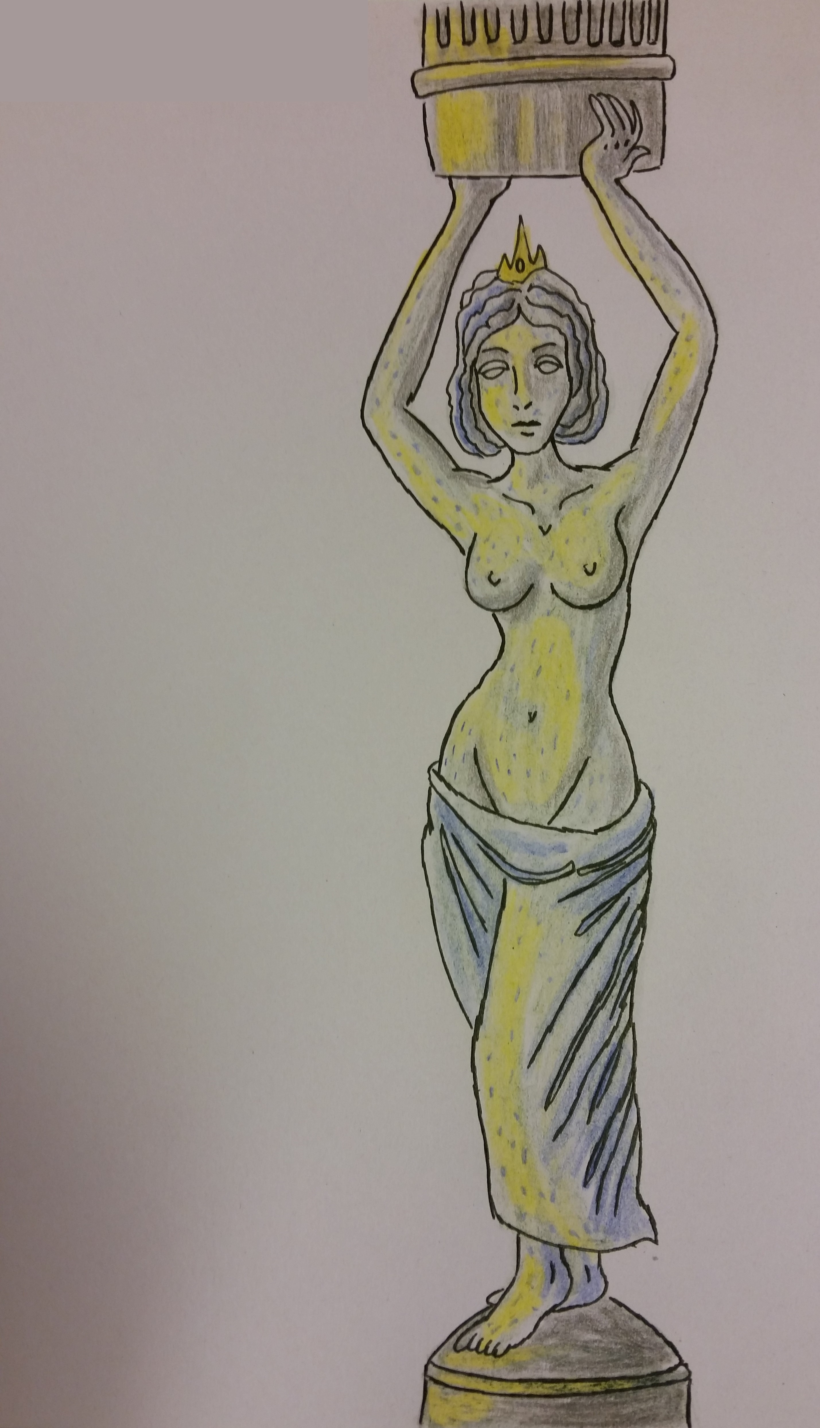 Try not to be upset with me for drawing a naked lady. You see, she is not really a lady, she is a caryatid, a stone pillar for holding up a building. Besides, I have been recently very ill, and drawing naked ladies makes me happy, even though it is a sin and means I will probably burn in hell. I am a hopeless sinner in this regard. I got kicked off Pinterest for liking an oil painting of a naked lady. I think it was a painting by William Adolphe Bouguereau. How could I be so terrible? You should check out my post about his sinful, horrible paintings so you can see how terrible I am for yourself. (Bouguereau) Of course, This post is not about naked ladies at all, so why am I fuming and ranting and telling all my darkest secrets about that?