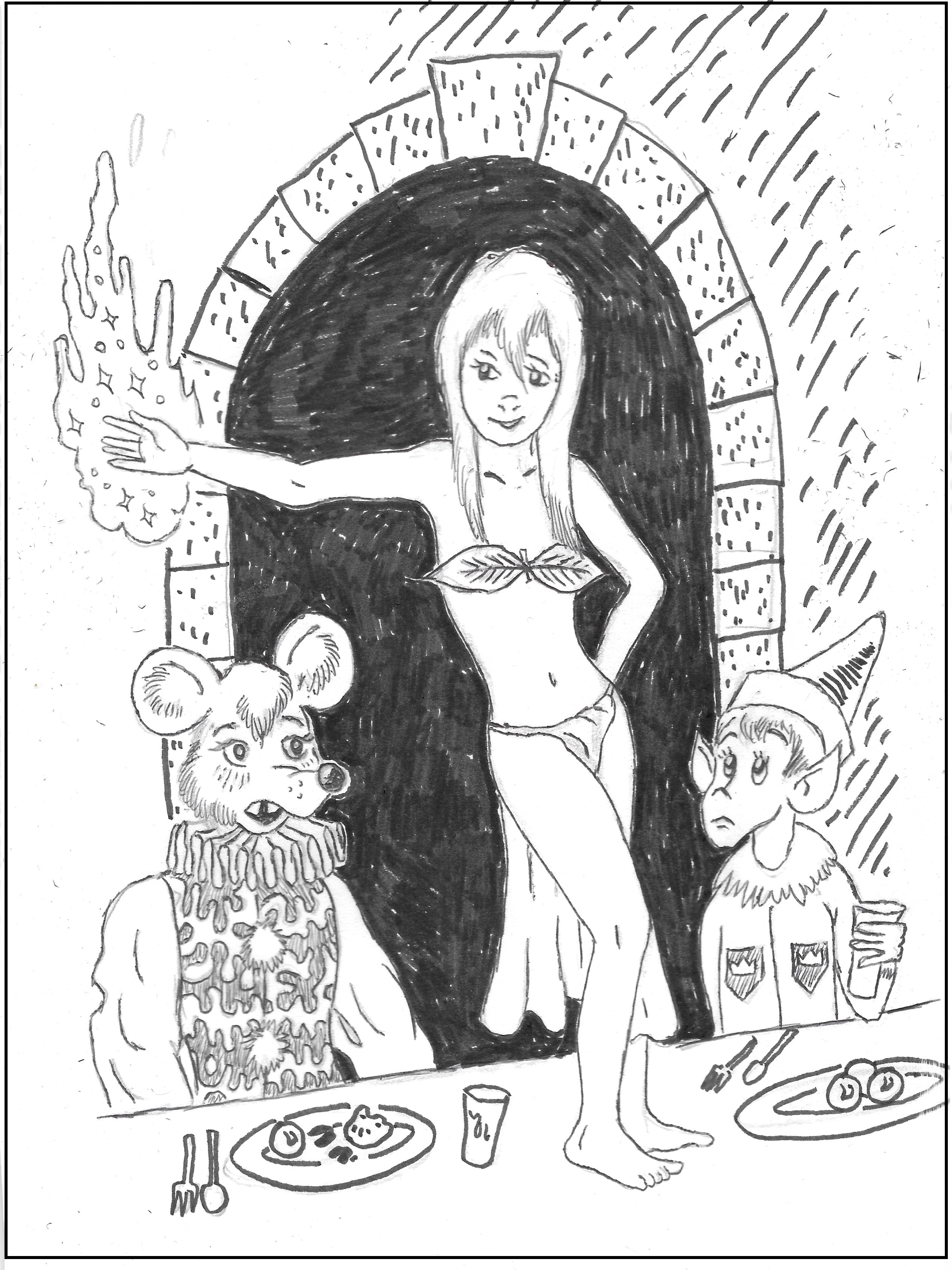 The meeting that followed the feast was limited to the Mouse King and Zam his wife, Prinz Flute and his three companions, Lord Lancelot, and the Rascal, who was forced to sit next to PoppenSparkle because he was apparently no longer welcome as Lancelot’s Squire. Schtinker, of course, wanted badly to be there, but he was taken to the bathhouse with the other Sylph children that didn’t pass the smell test before bedtime.