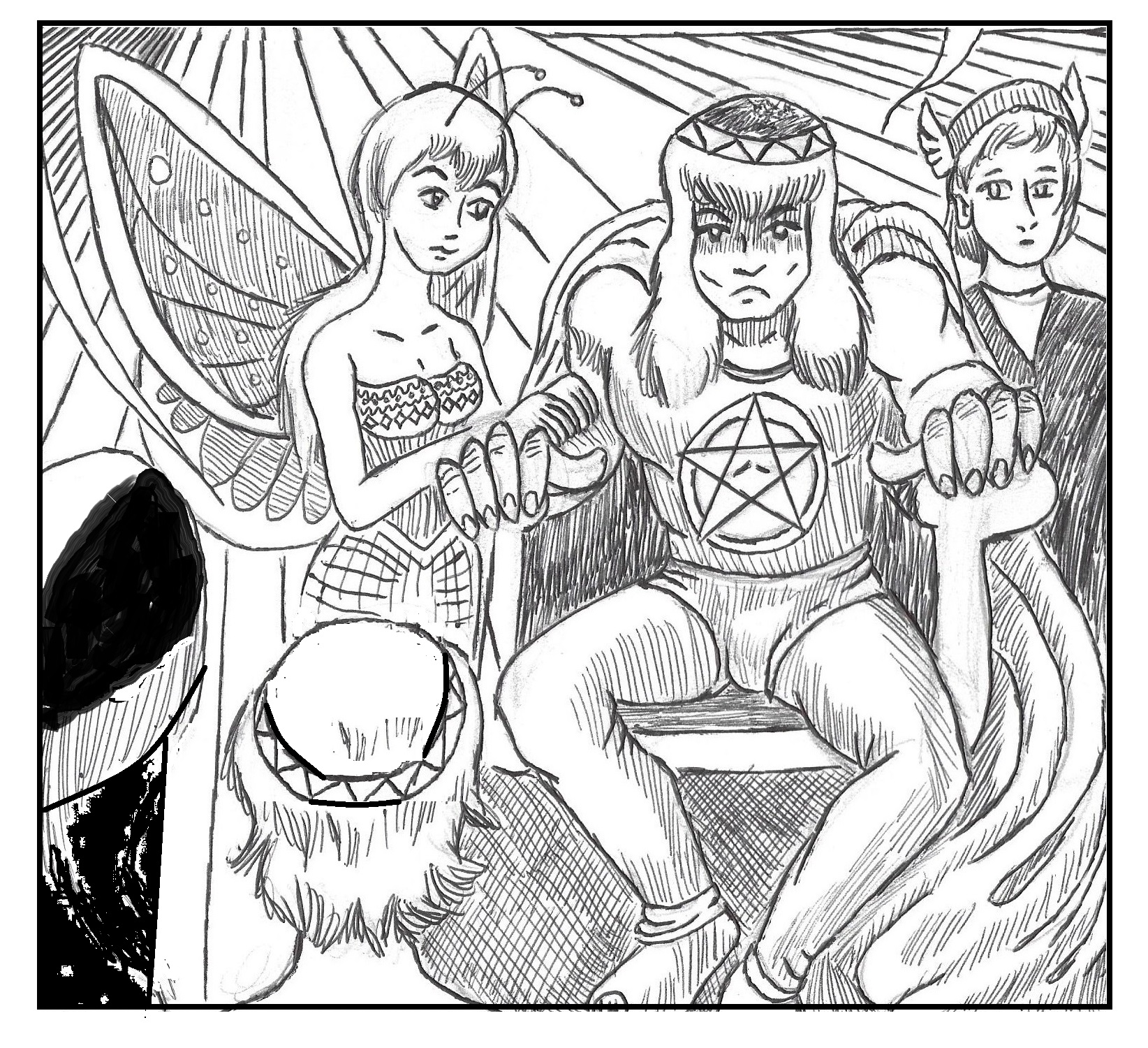 “This is Derfentwinkle. She’s potentially going to be Master Eli Tragedy’s third apprentice,” said Bob, pulling me forward by the hand and placing my hand om the fat fairy captain’s gloved hand.