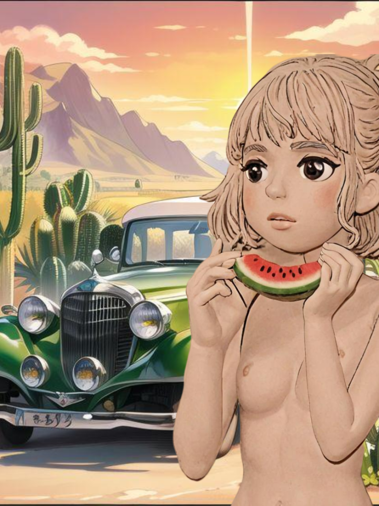 They found the quiet place surrounded by Saguaro cactuses where Andy had planned to picnic. It was on the ranch that had once belonged to Grandpa’s best friend, and Grandpa had said repeatedly that he courted Grandma there several times. They laid out the Indian blankets for the picnic and carried the food out from the back of the car. Sally insisted on carrying one of the watermelons even though it was half as big as she was.